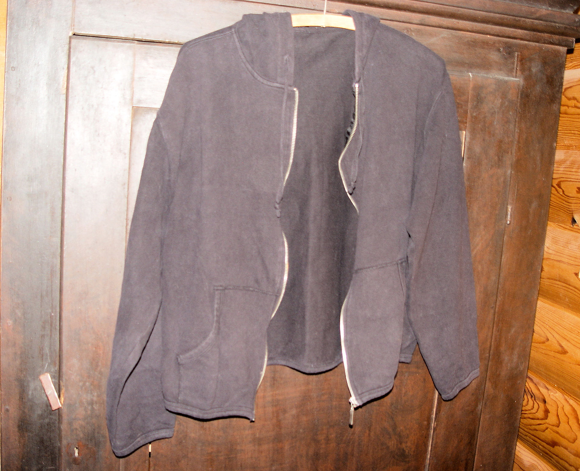 Vintage SO-SOFT stretch cotton sweatshirt with pockets. Worn in to perfection. It is a shorty and great for light weather in spring, summer or fall. Durable and sporty. This has the 'look' and the comfort.