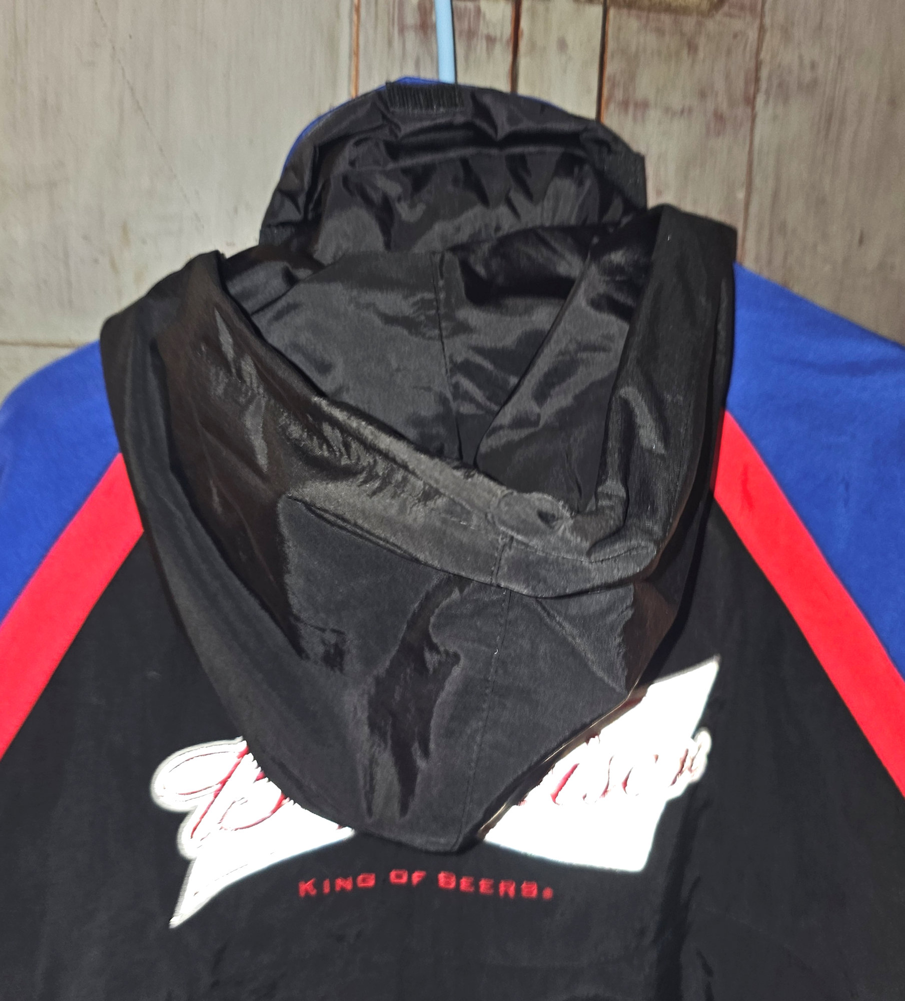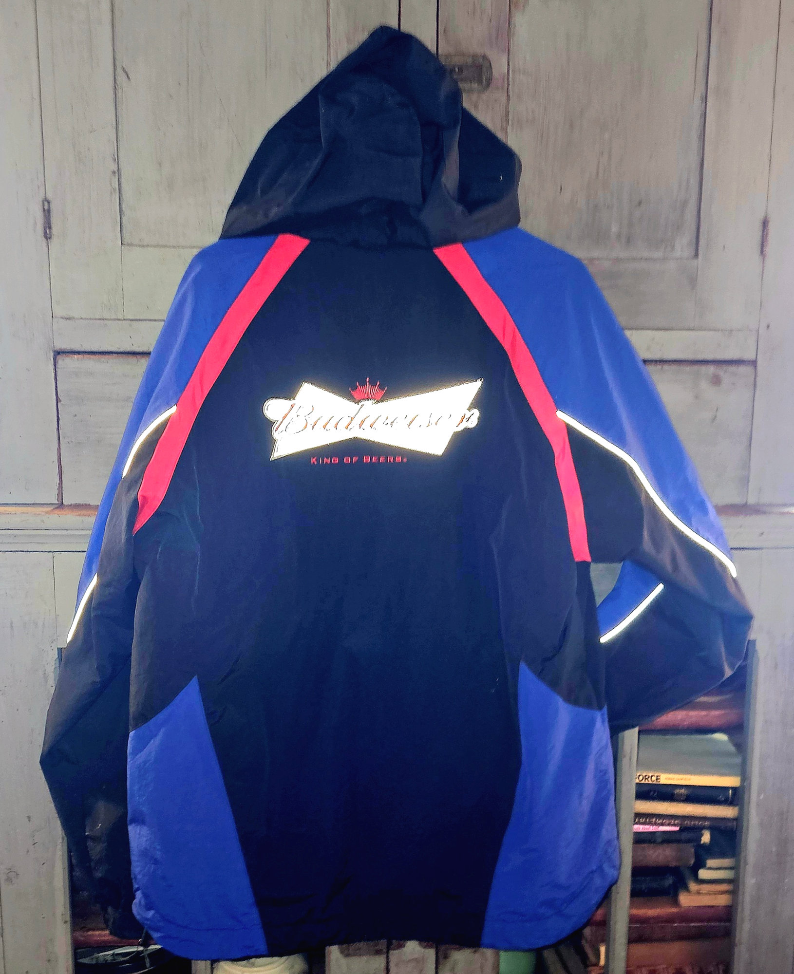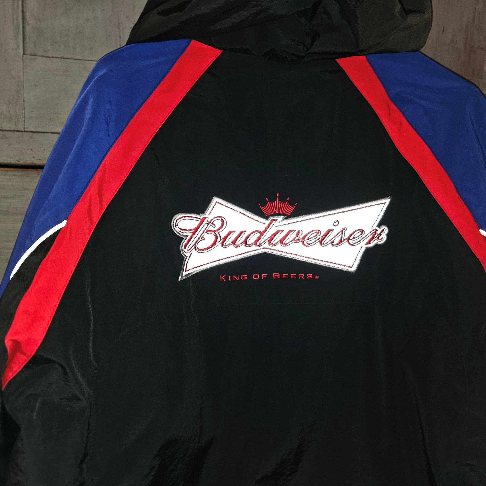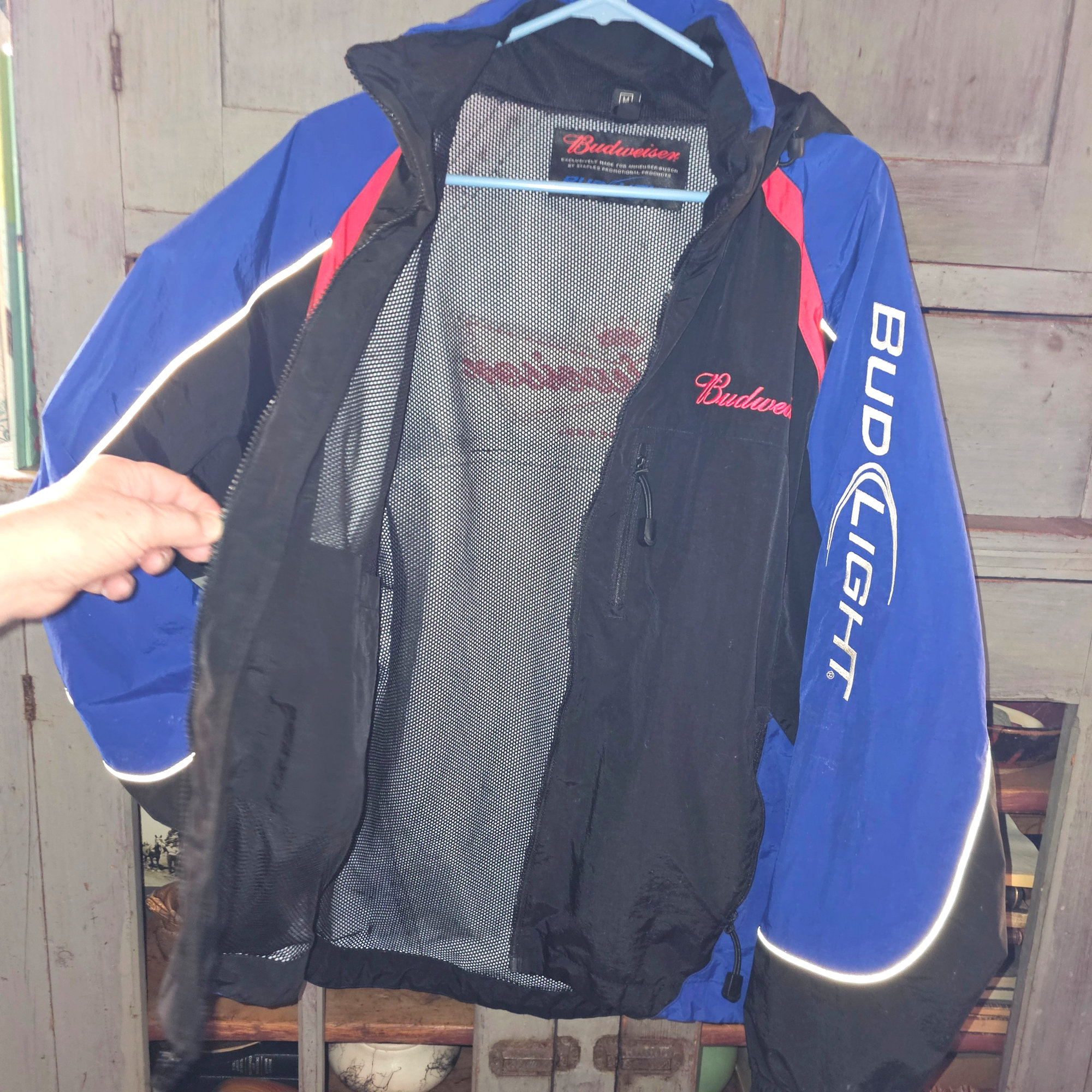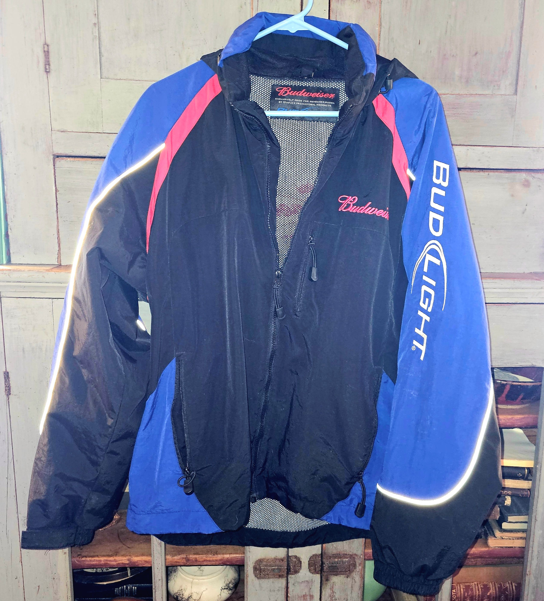 Budweiser Bud Light hooded windbreaker jacket, officially licensed by Anheuser-Busch