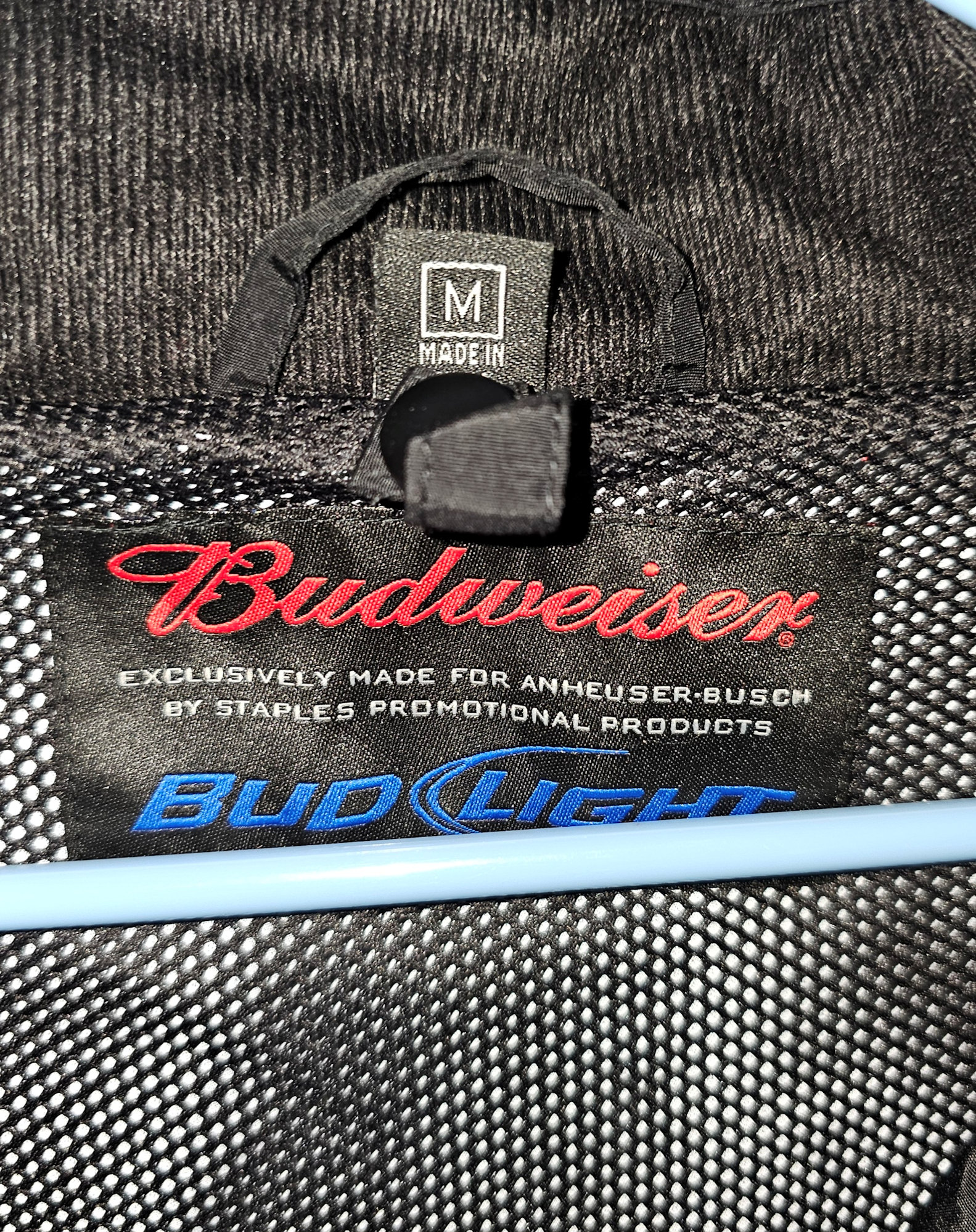 * Full-zip front with bold Bud Light logo on sleeve and Budweiser back patch