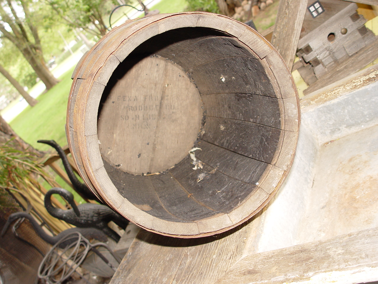 barrel what looks to read...Fex n Fruit Produce Co. So. ????