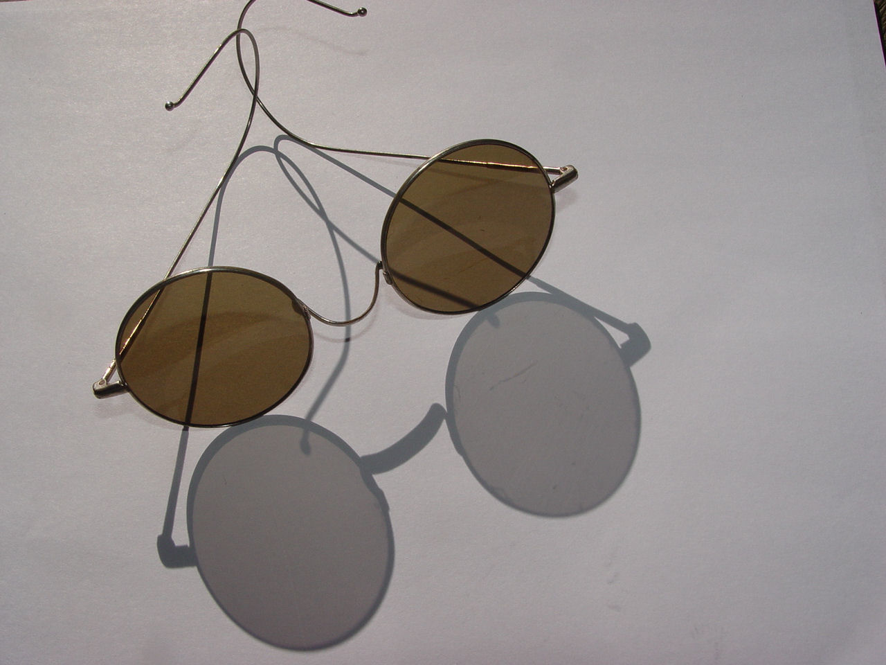 1920s Willson Sunglasses Green Lenses, Brass celluloid