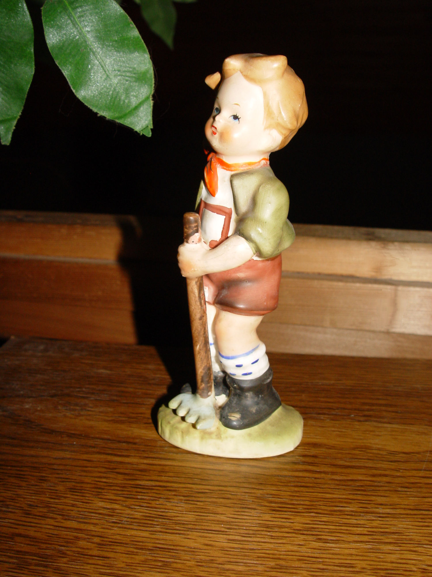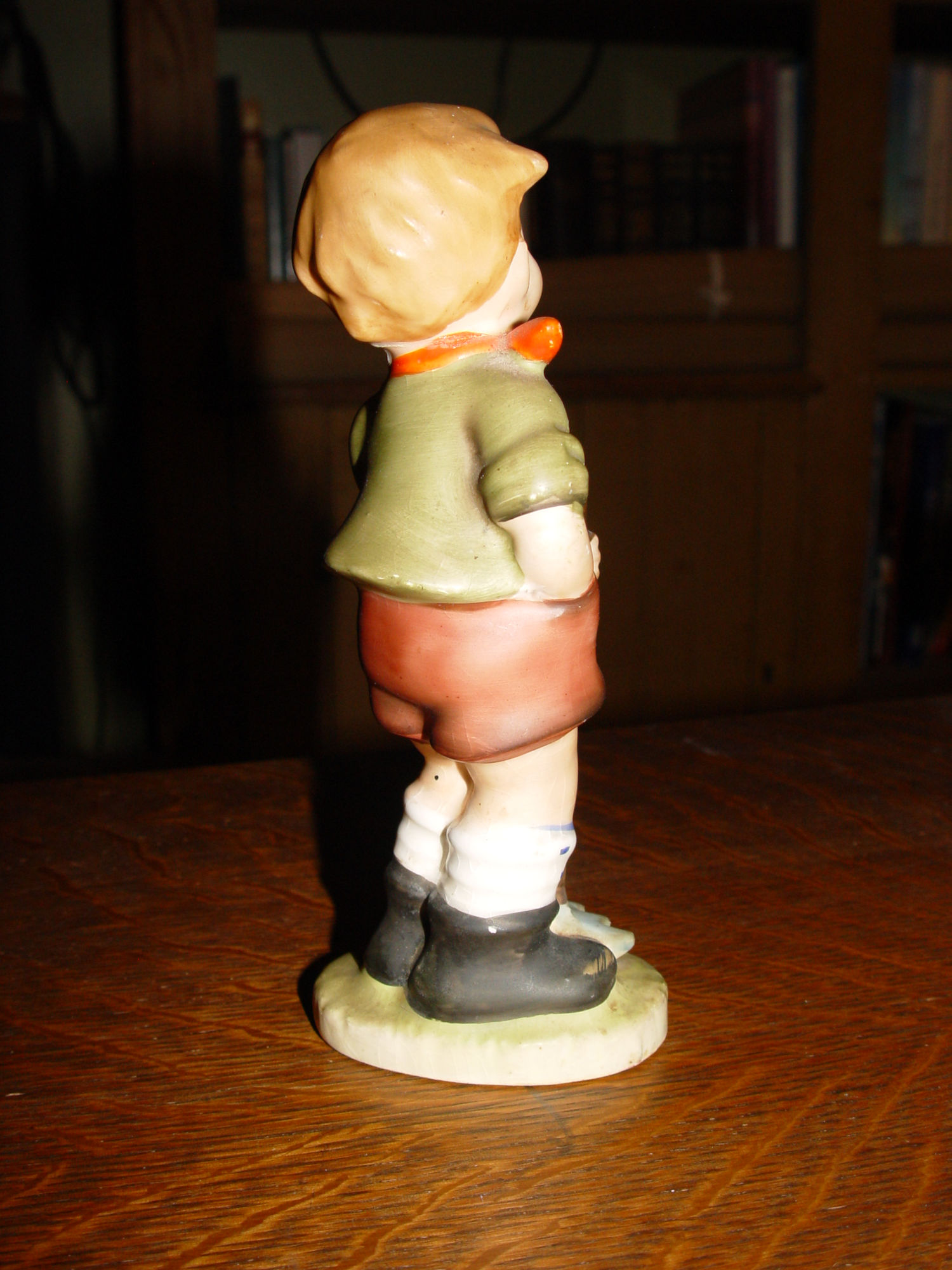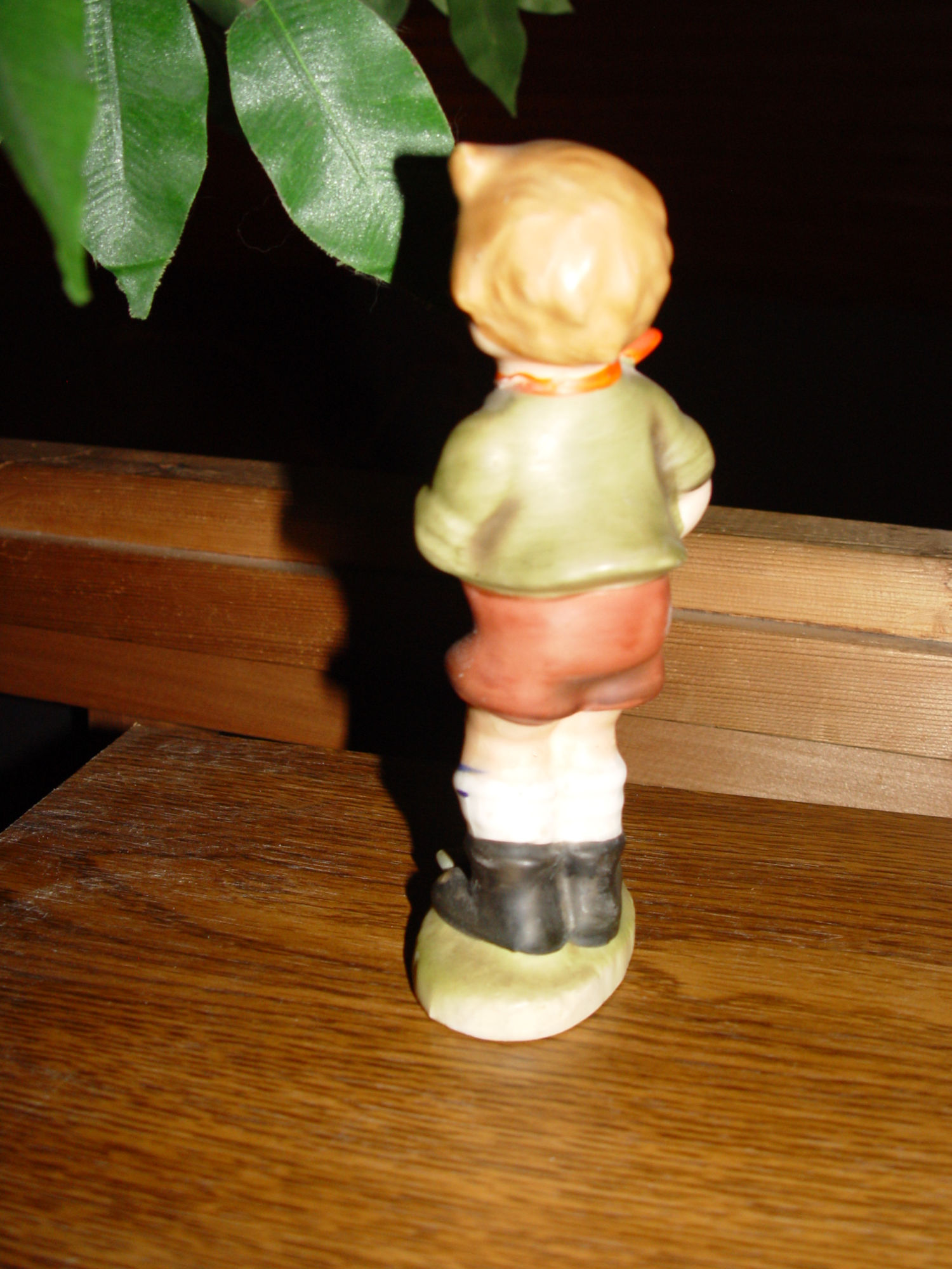 These after some research, were an attractive & popular alternative to the more expensive Hummels. The little boy's colors are bright, and he has no chips that I see.