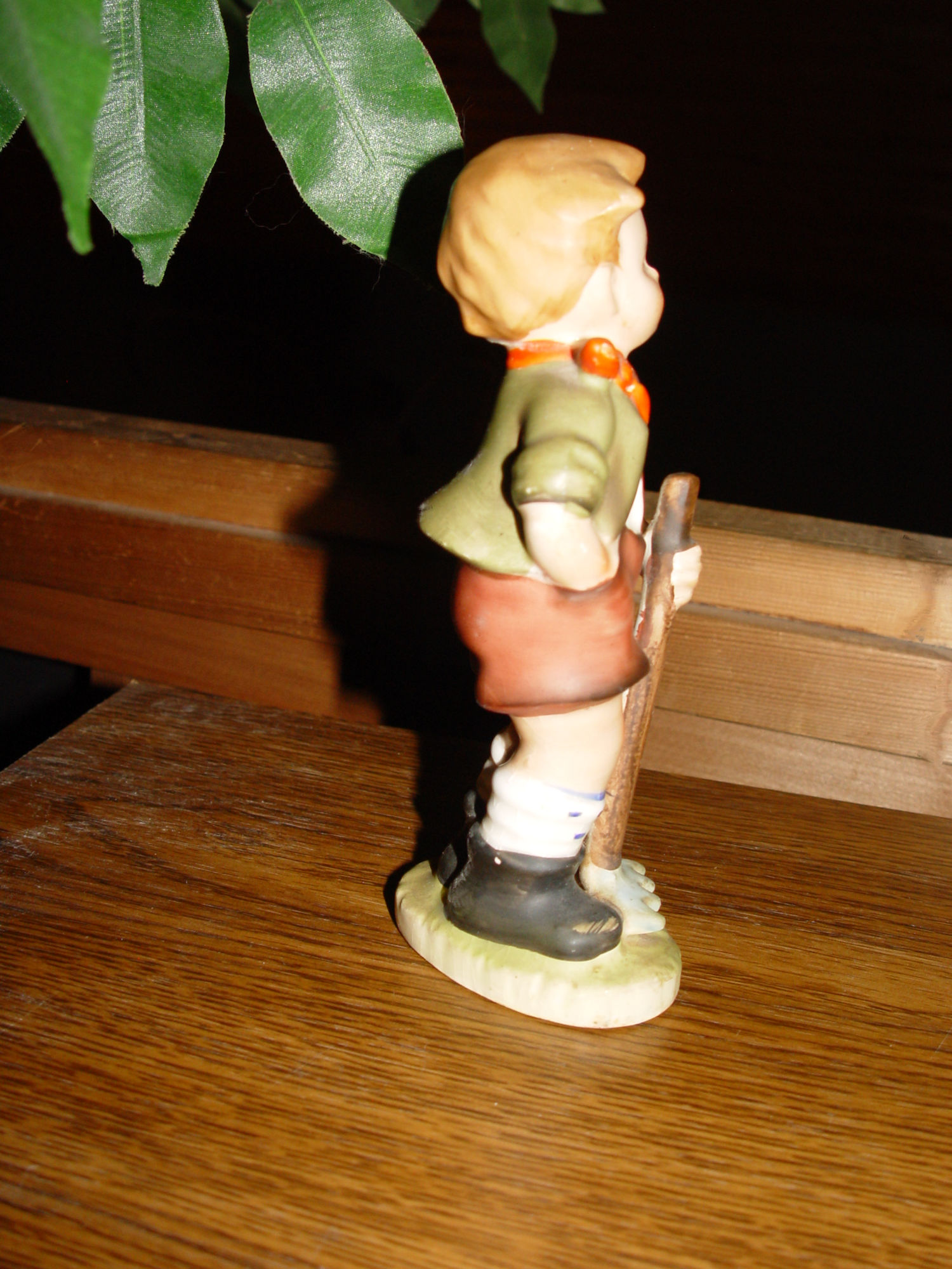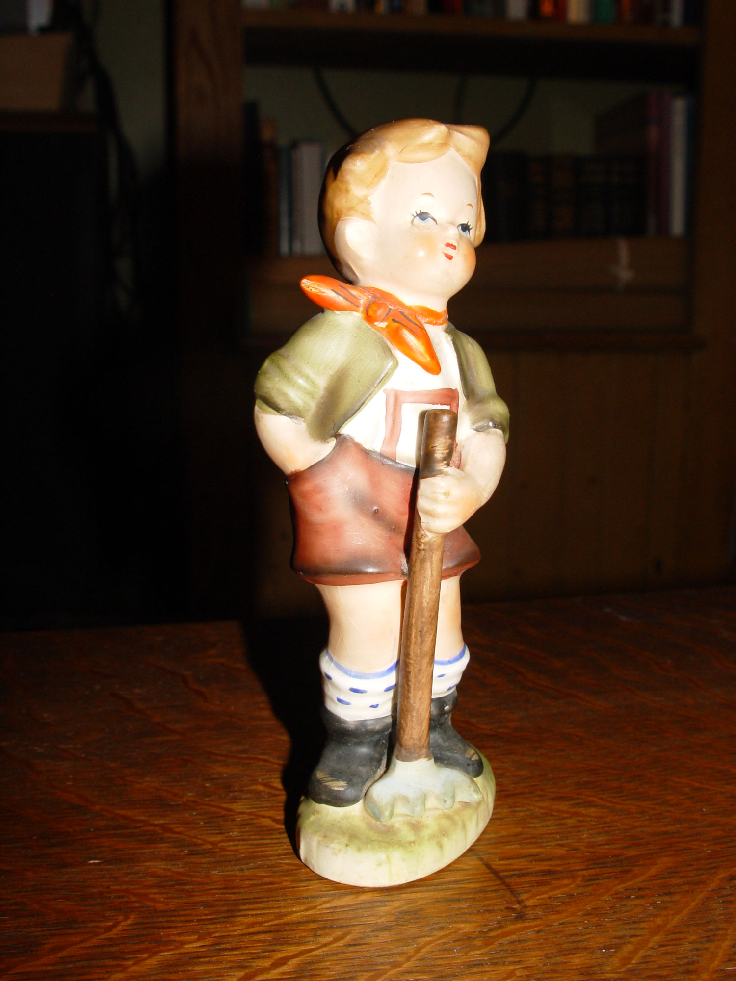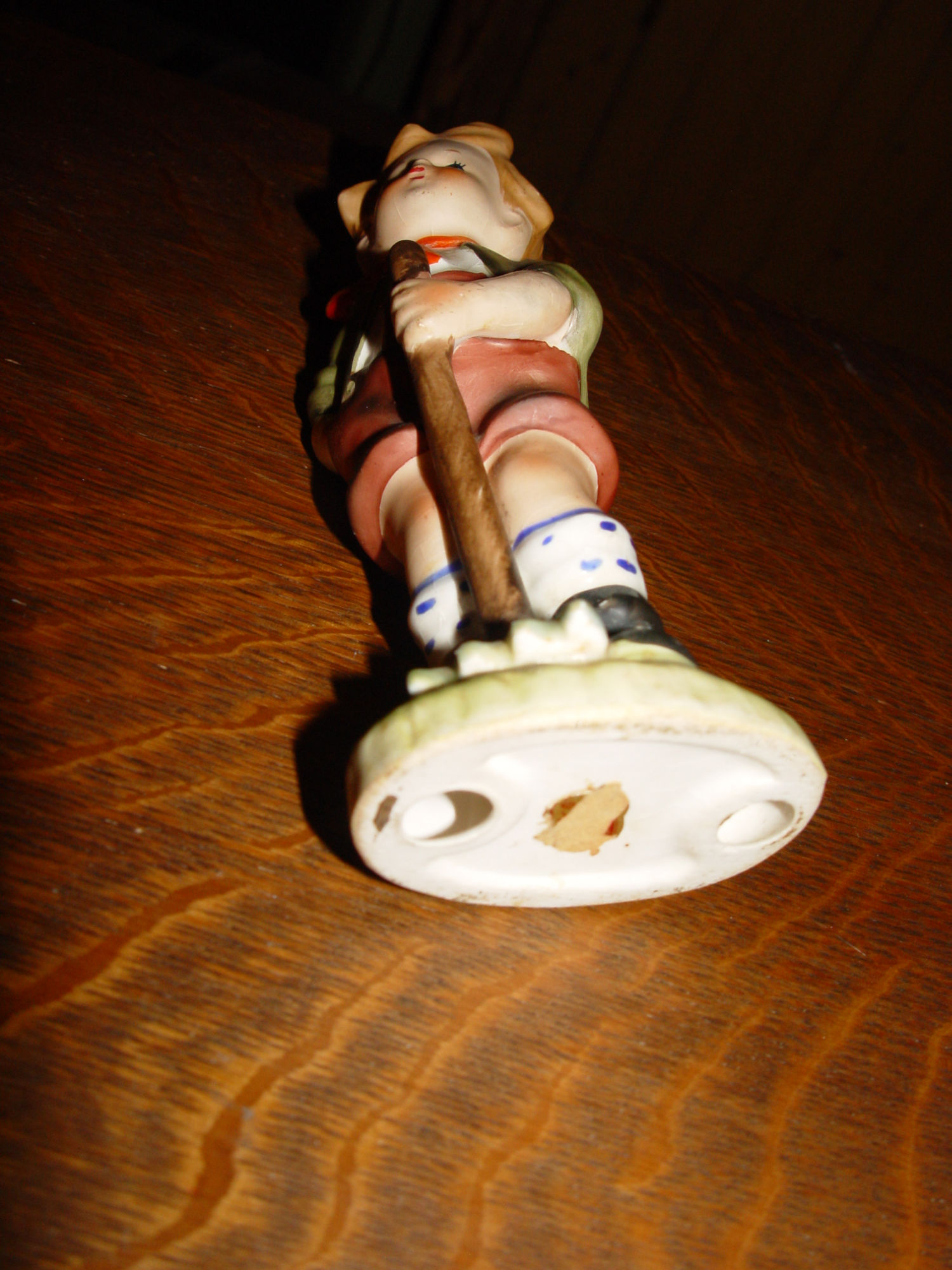 These after some research, were an attractive & popular alternative to the more expensive Hummels. The little boy's colors are bright, and he has no chips that I see.