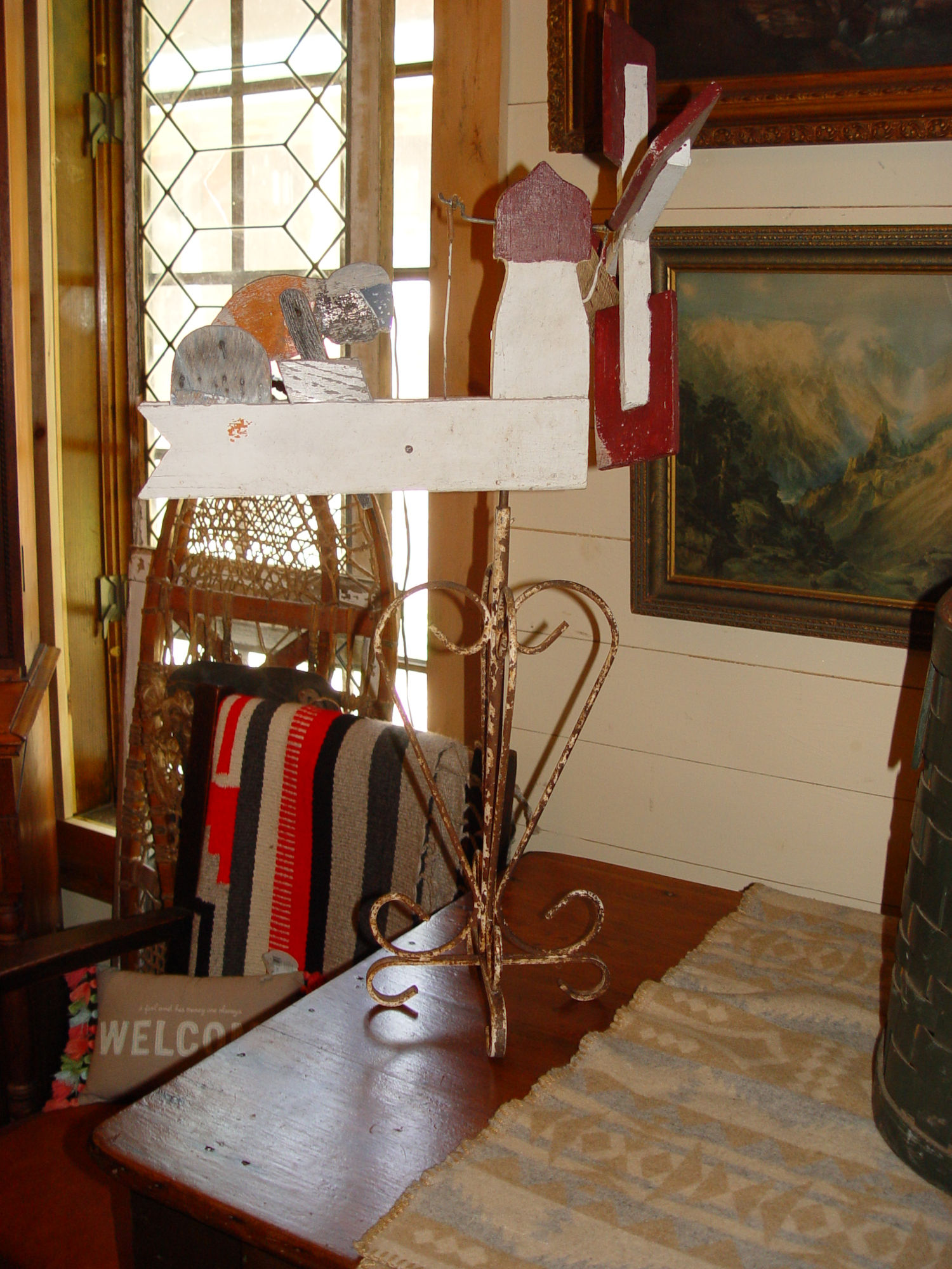 Not touched other than placing on stand. Original and a wonderful example of American Folk Art.