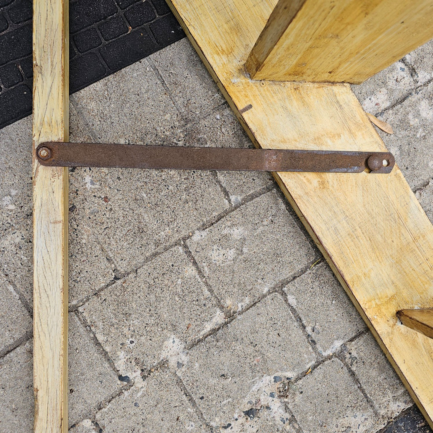 them. Shows a iron brace that hooks in place, allowing