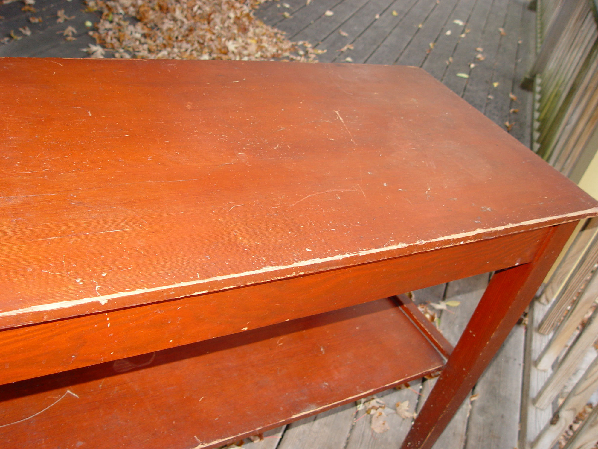 early red wash paint or stain and tapered legs. This table