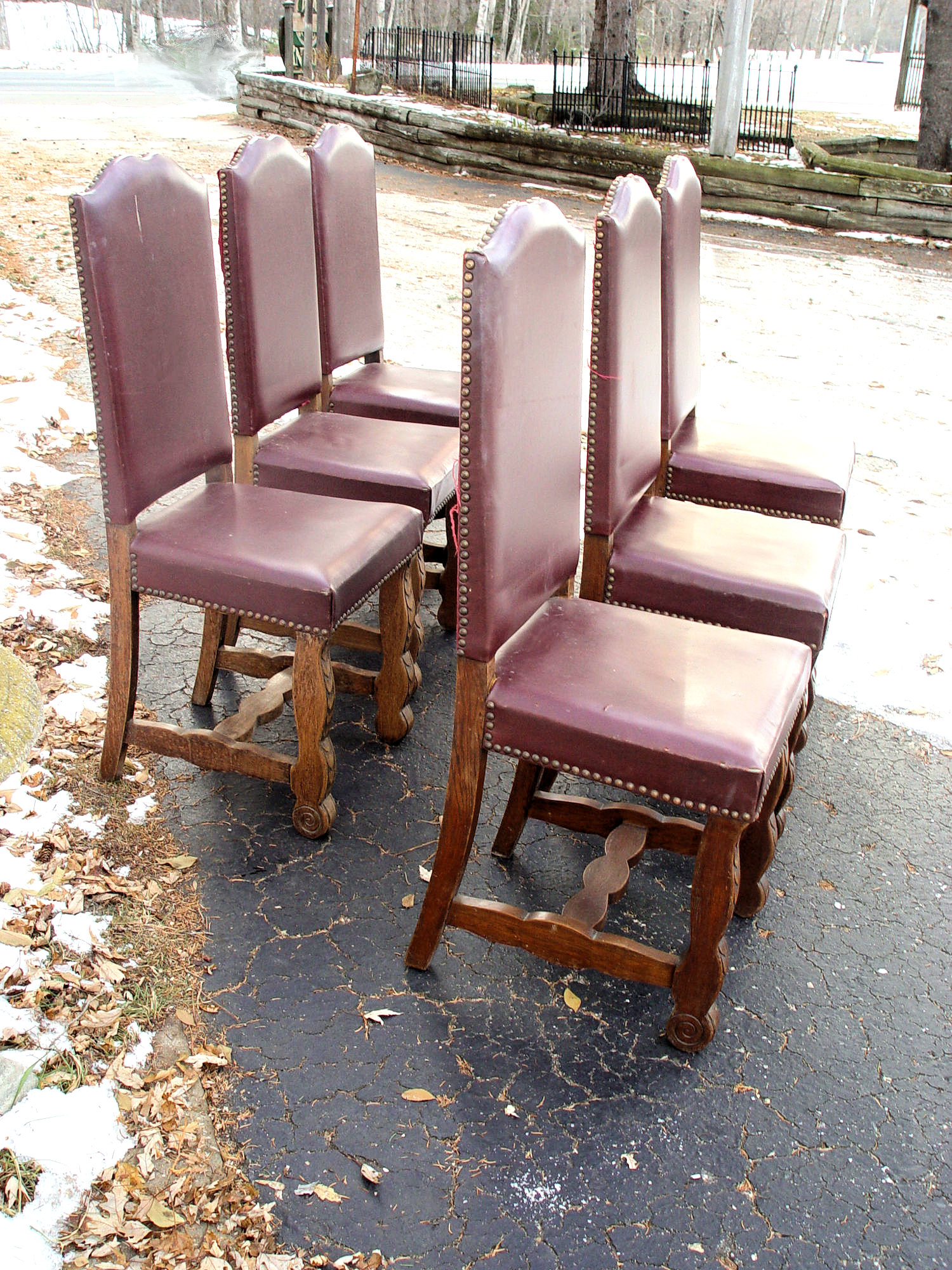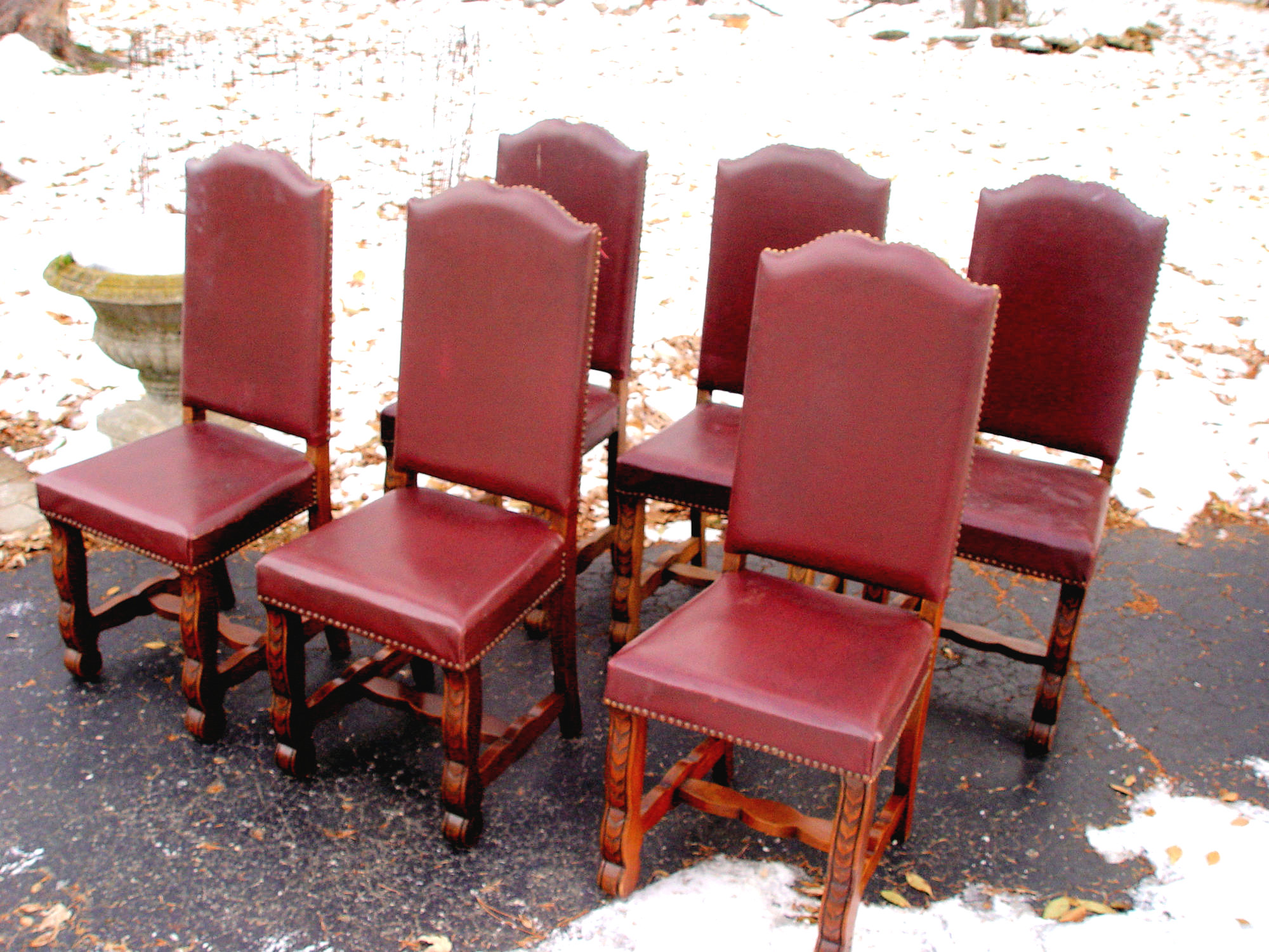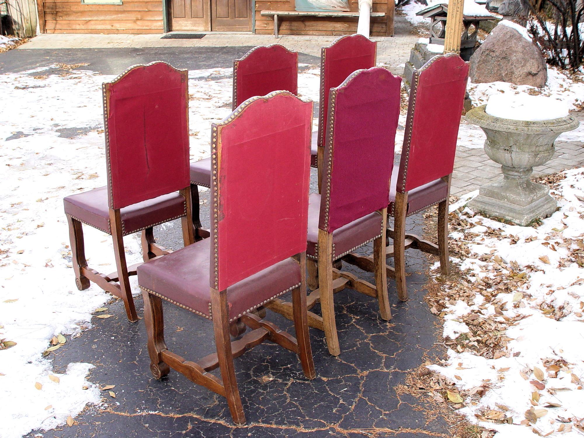1920s Set of 6 Spanish Revival Tuscan Studded Tall Back