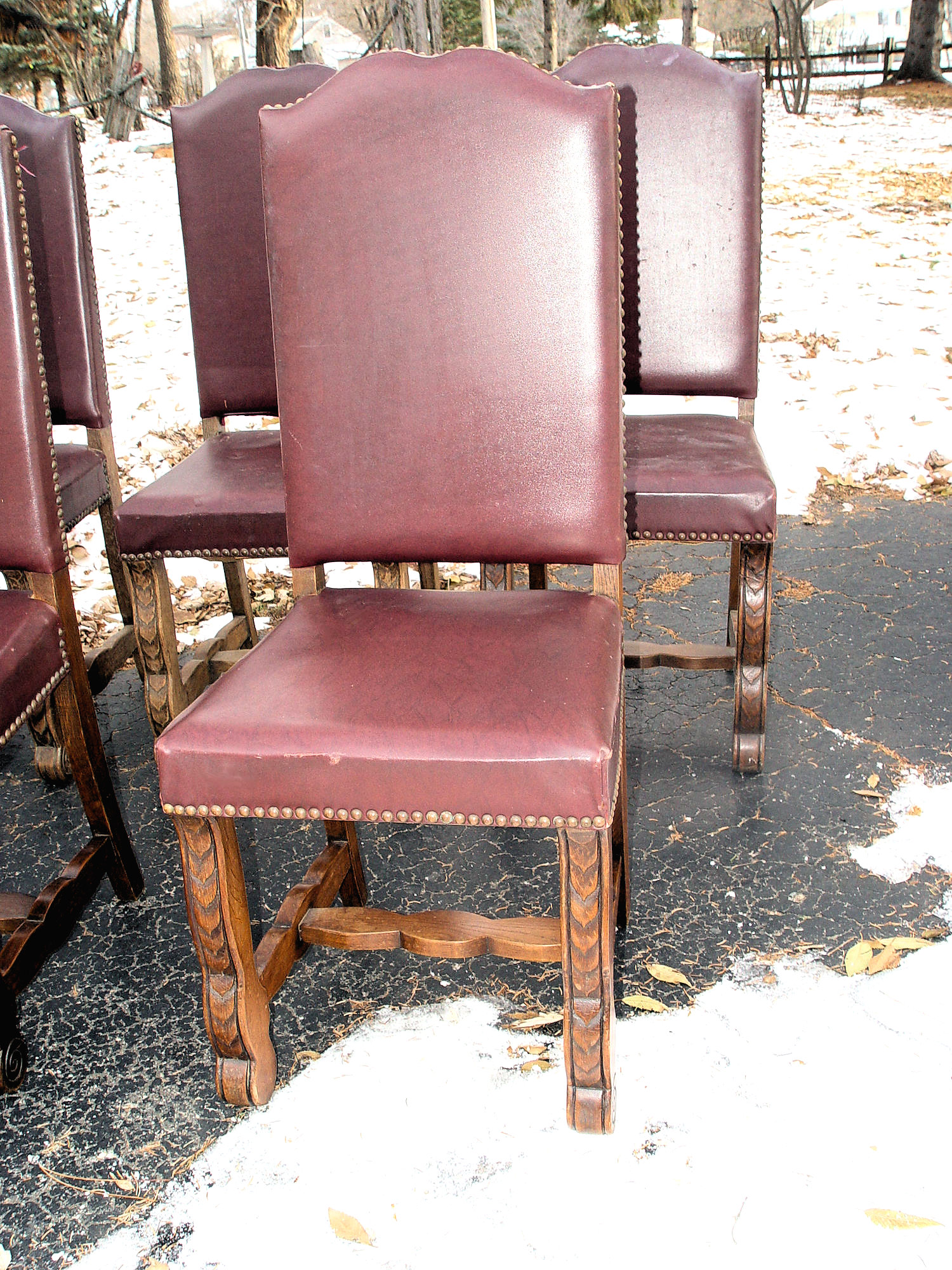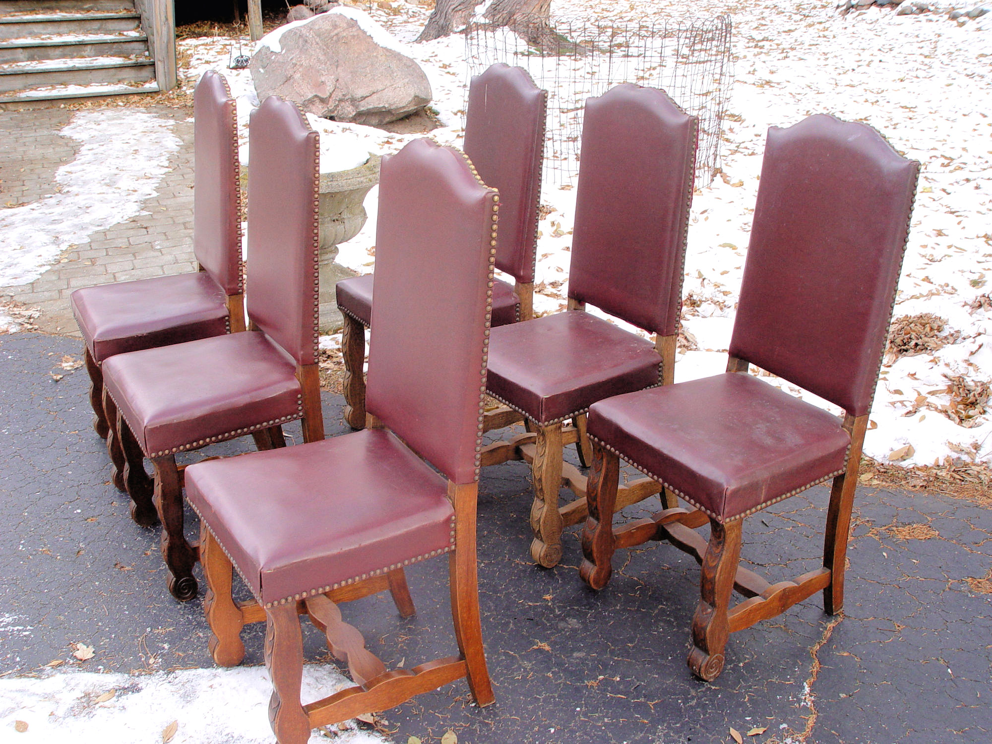 There is a bit of over spray on a few which can be cleaned off and very, very minor blemishes to the upholstery. The cloth back's show the most wear as can see in pictures. Personally I would reupholster but up to buyer. Please consider shipping and transportation costs. We are very happy to work with your shipping company or can offer a carrier that has picked up from us before and is very good. Let us know!. Local pickup available in Bemidji Minnesota or some delivery in-state. .