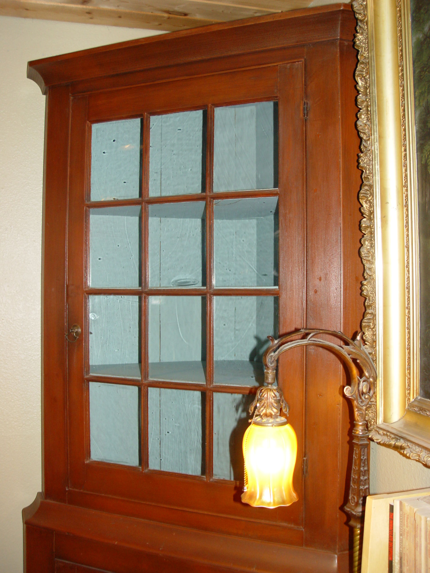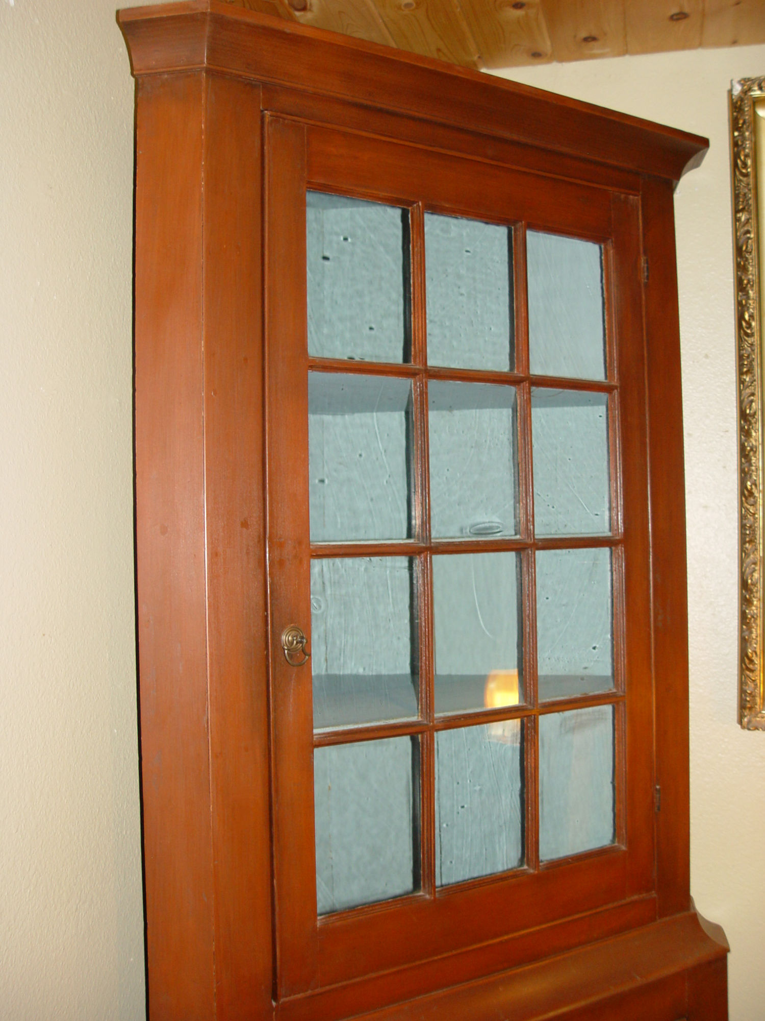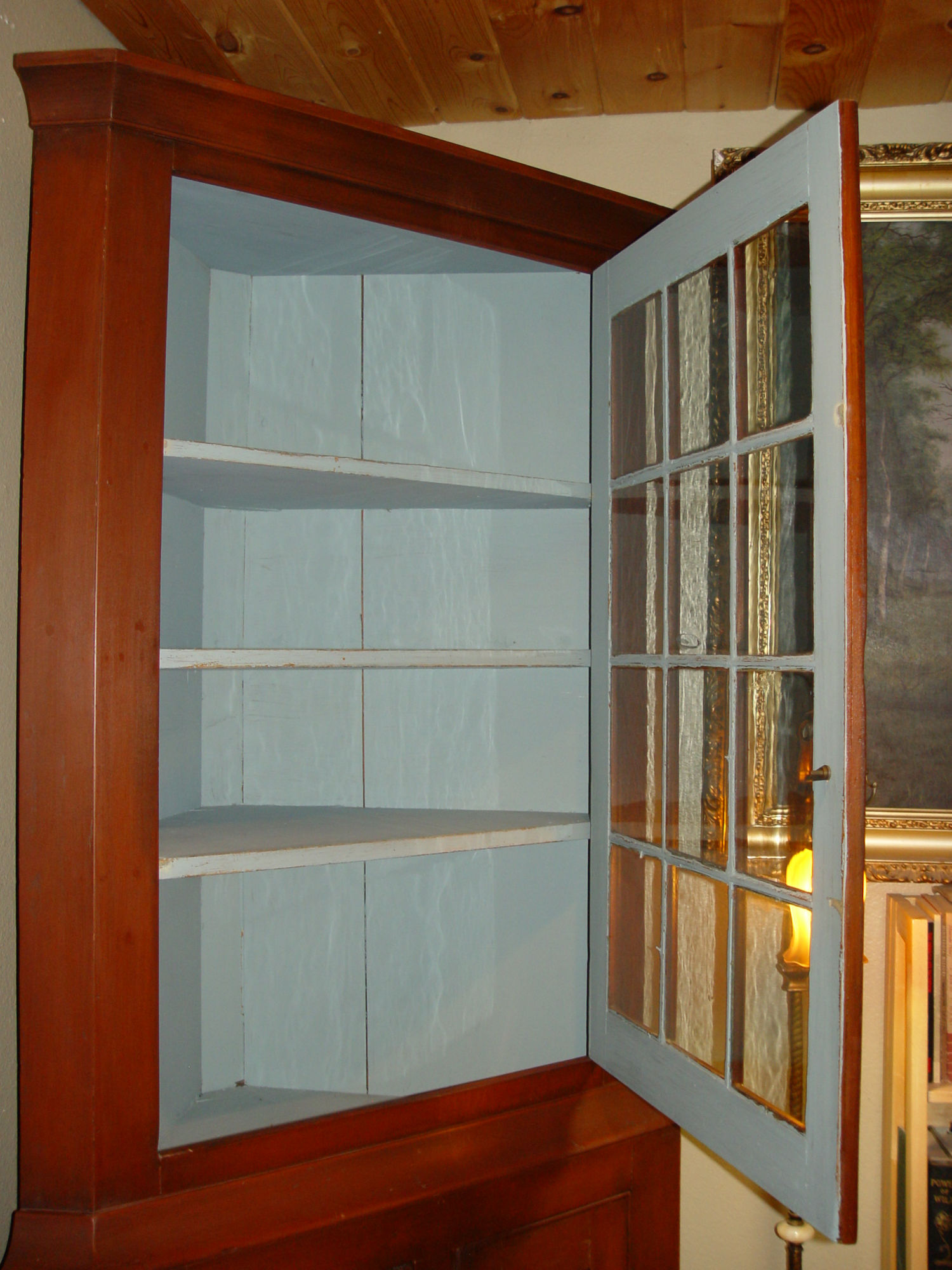 Cupboard retains the original 12 panes of hand spun glass,