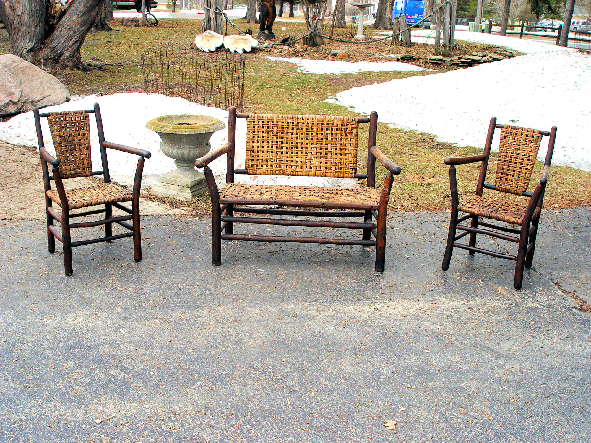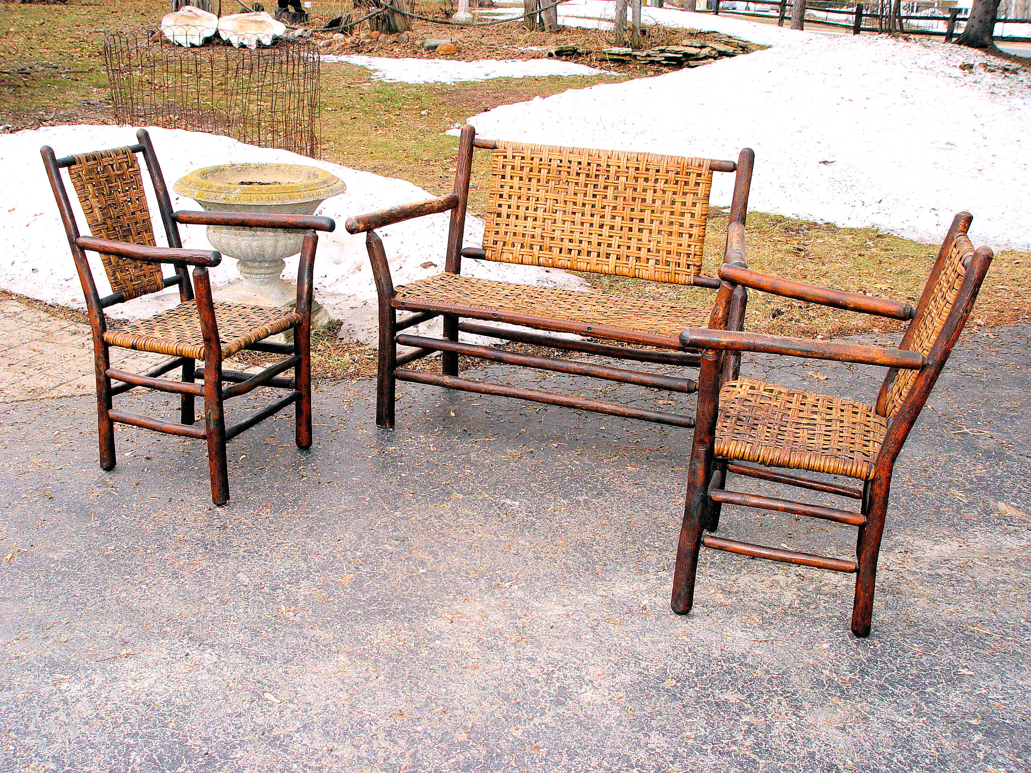 1930s Old Hickory Signed 3 pc. set: Settee, 2 Armchairs