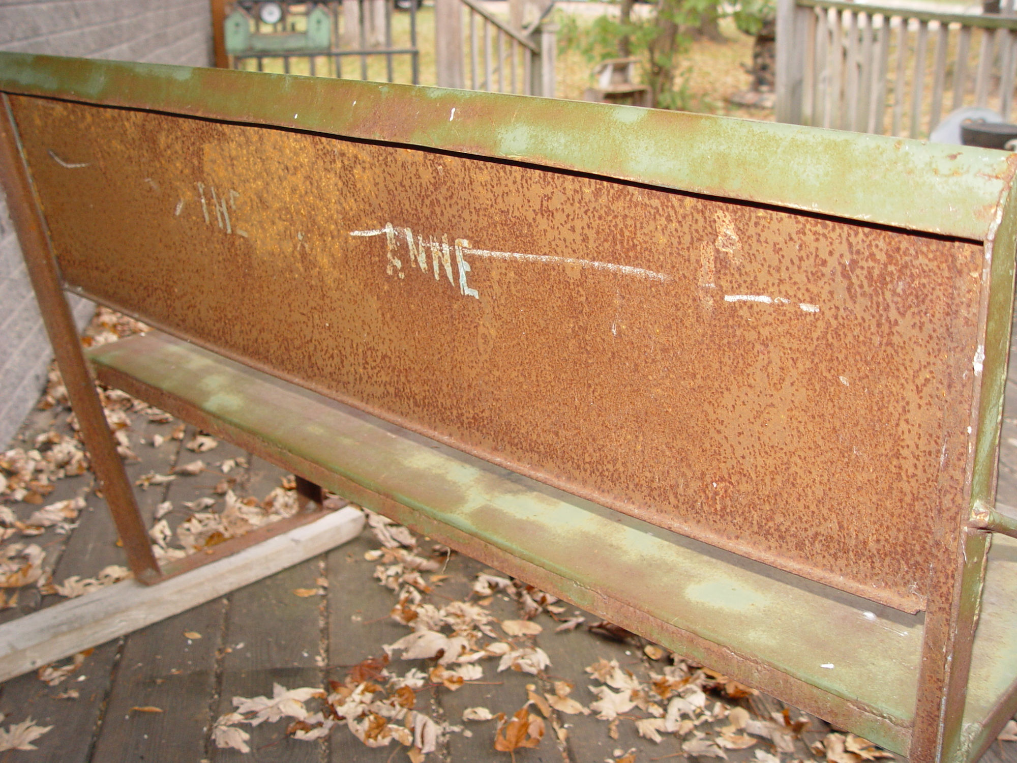 back shows an even surface rust with the letters 'The ....