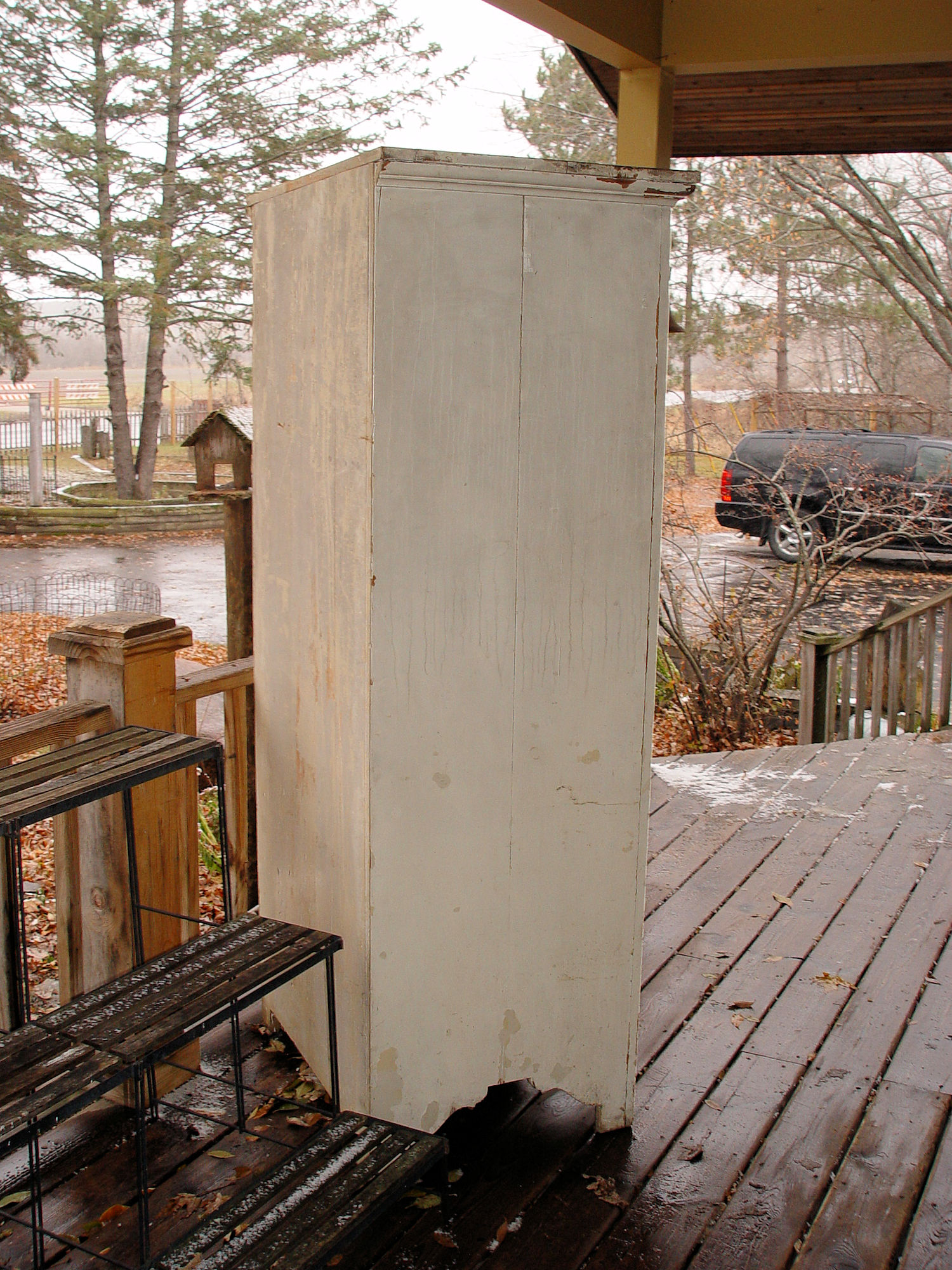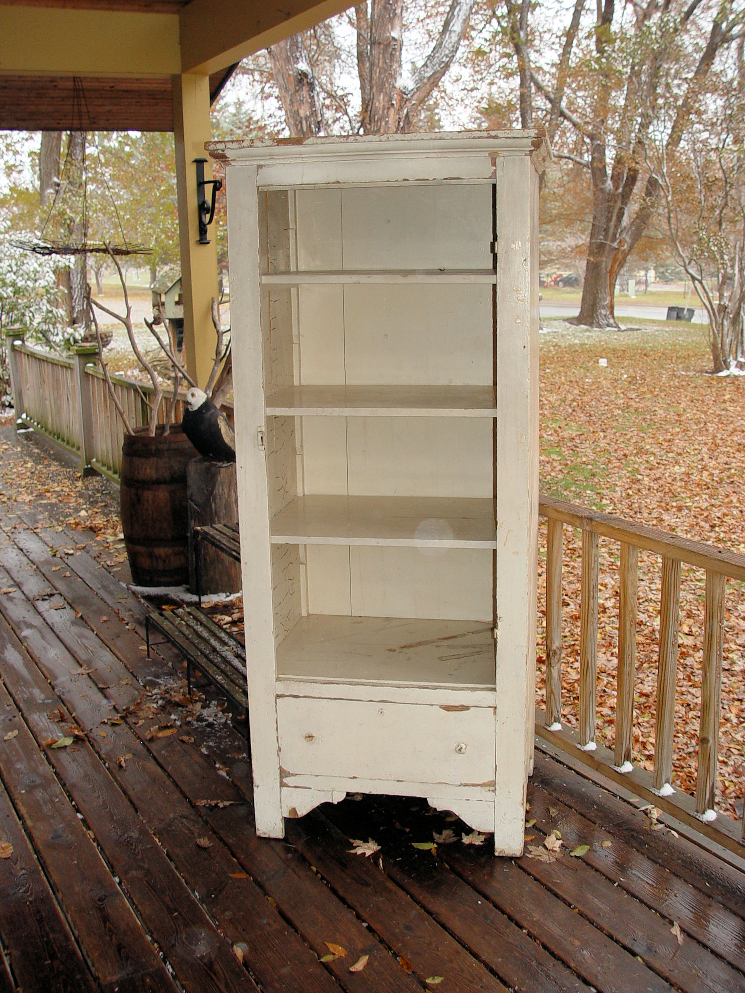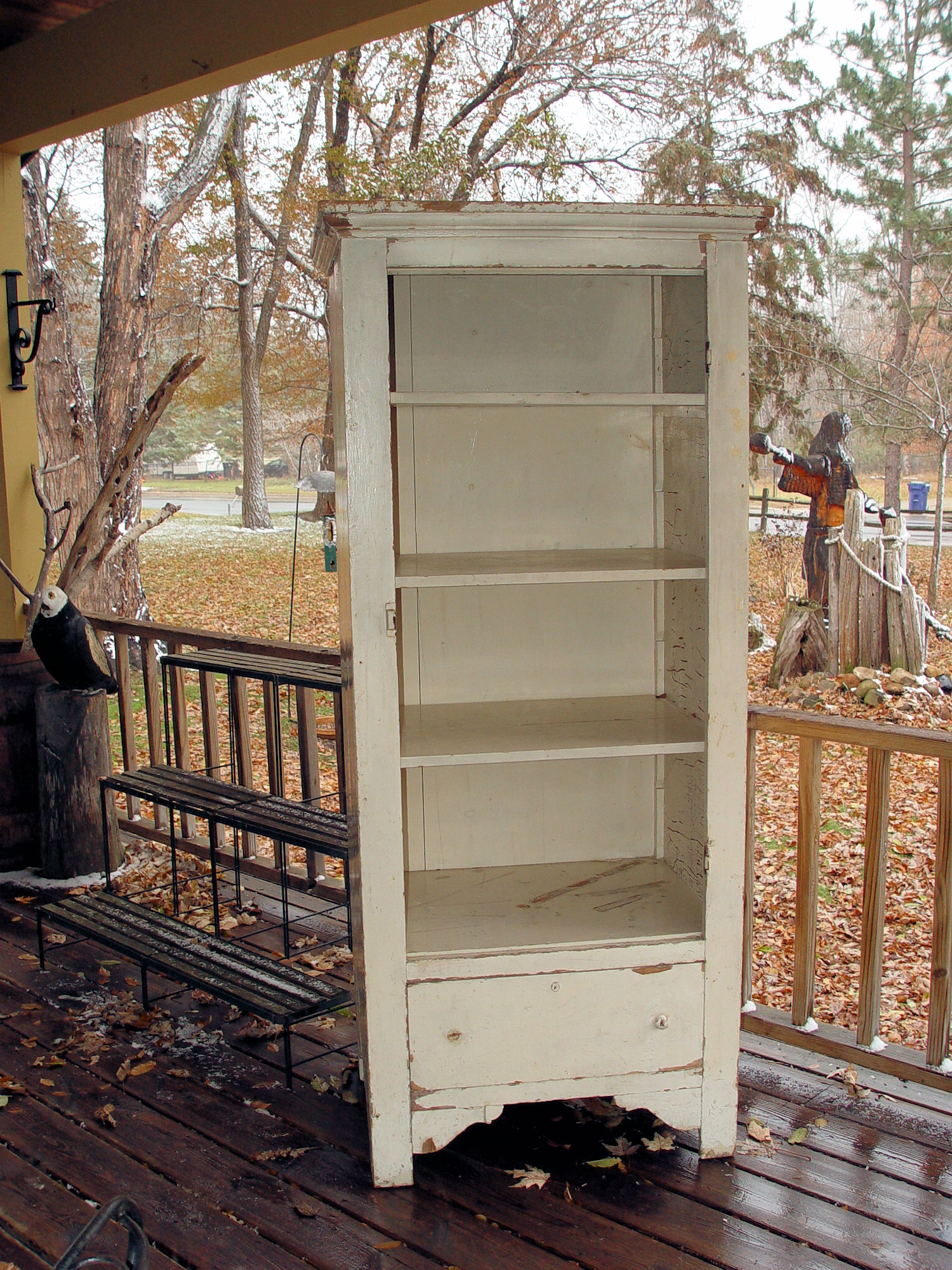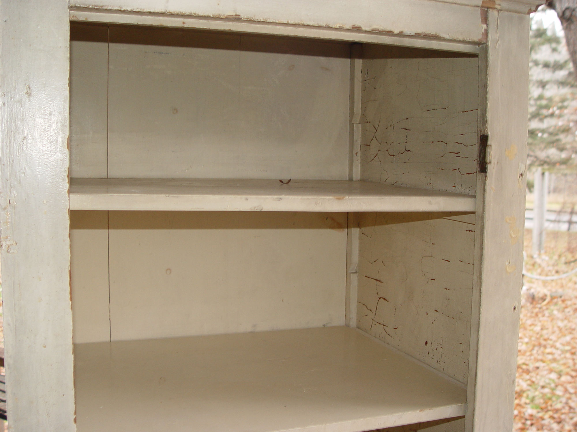 Late 19th c. primitive chimney cabinet with orig. white chippy paint