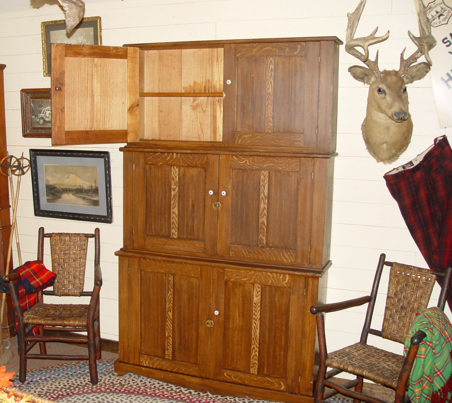 American made out of Butternut in the late part of the 19th century around 1880s.A single shelf inside each portion allows for the display or storage of your favorite items.