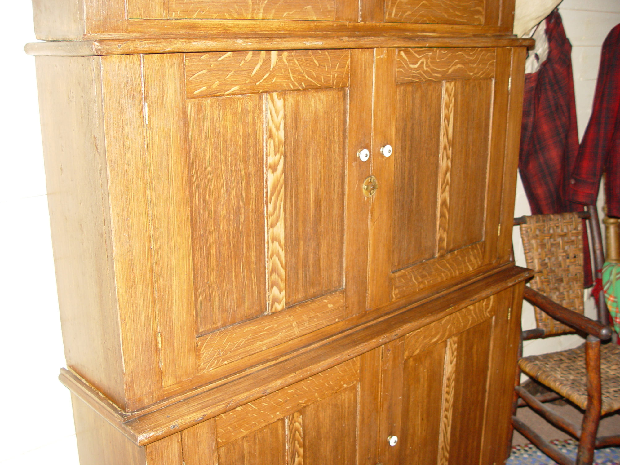 A fabulous graduating 3 piece cabinet with raised paneled grain decorated paint. This very unique piece of furniture that shows lots of storage and beautiful grain made as a butler's cabinet or office cabinet.
