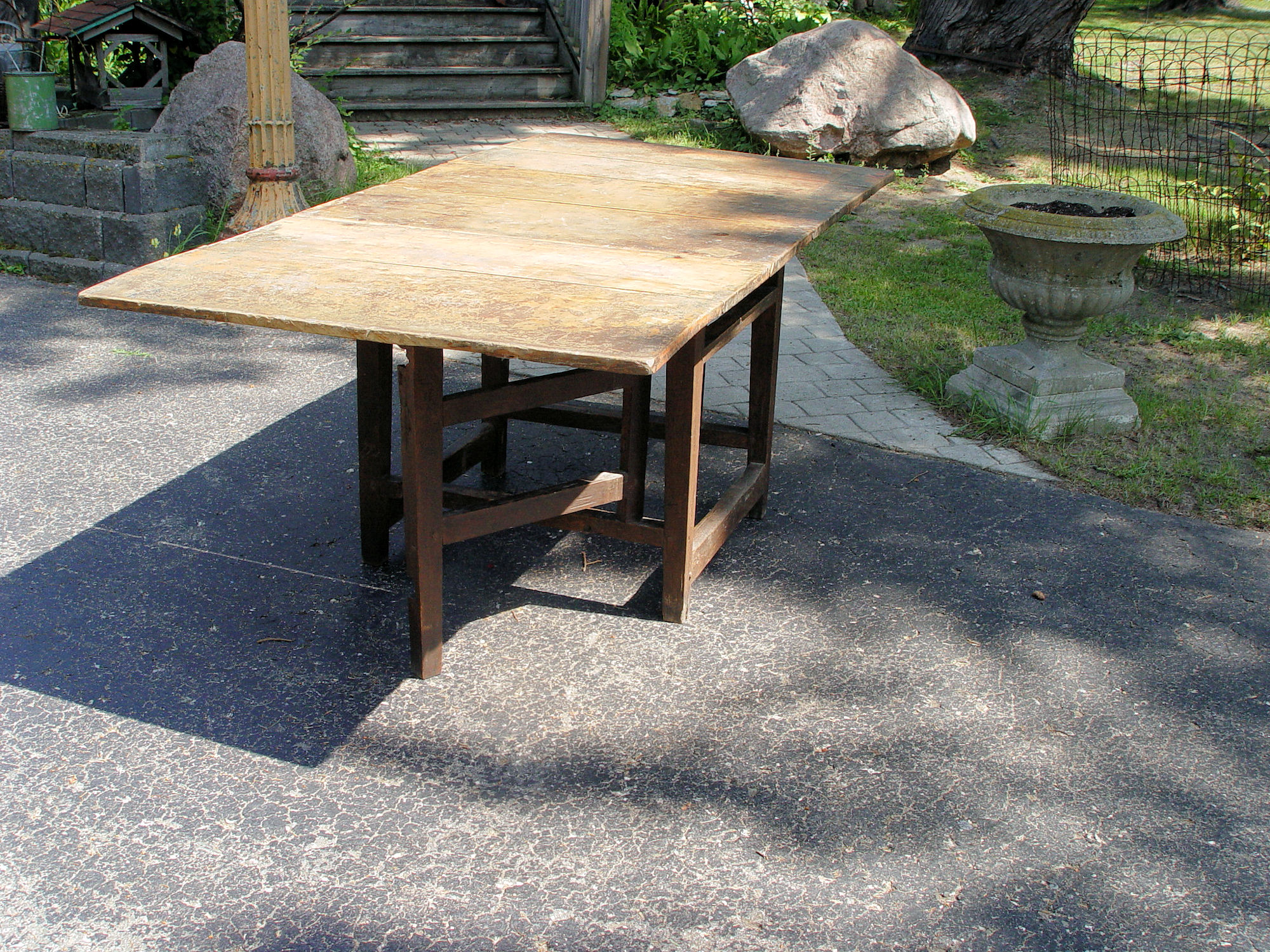 Use as a center Island or a dining table. Perfect for a early primitive home.