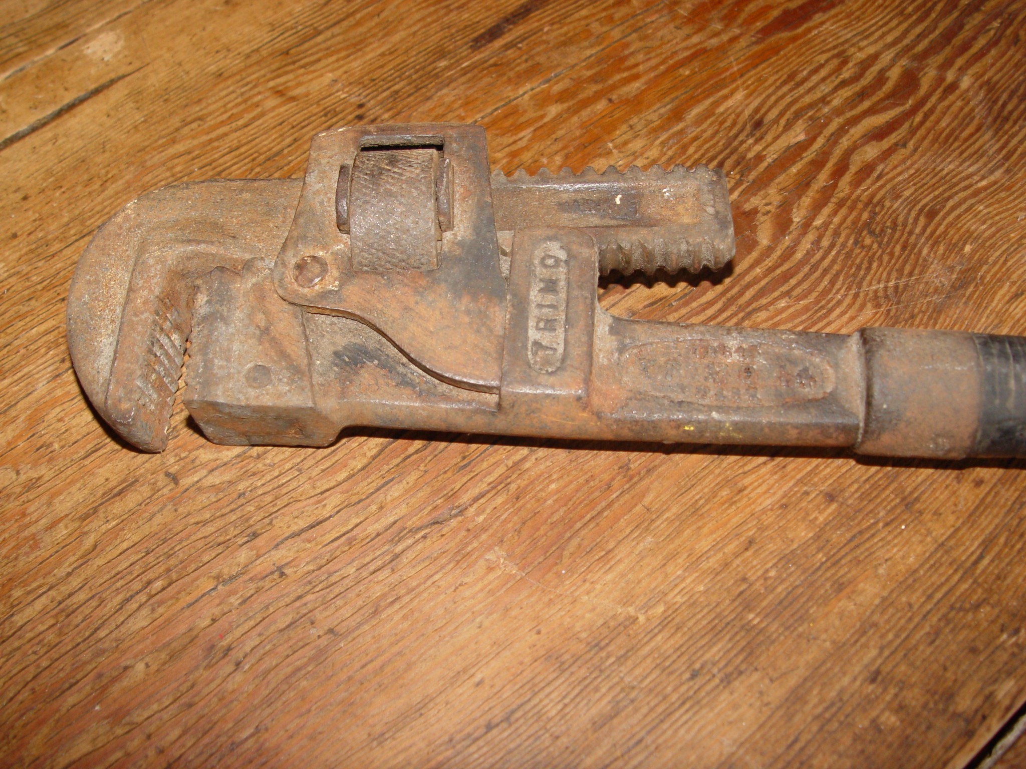 This is one of the nicest quality pipe wrenches of the late 1800's era. It feature a very smooth movement on the adjustable jaw gearing. Seams to work very well.