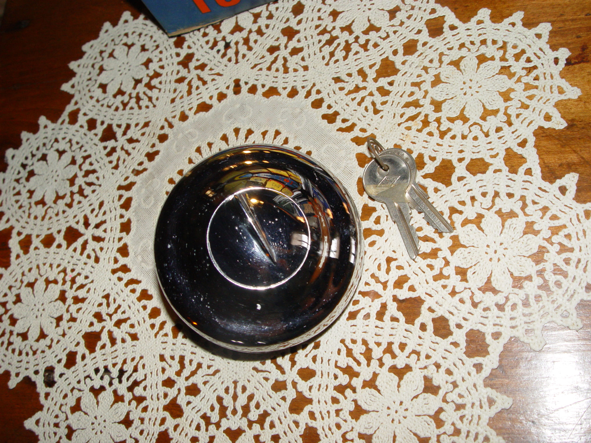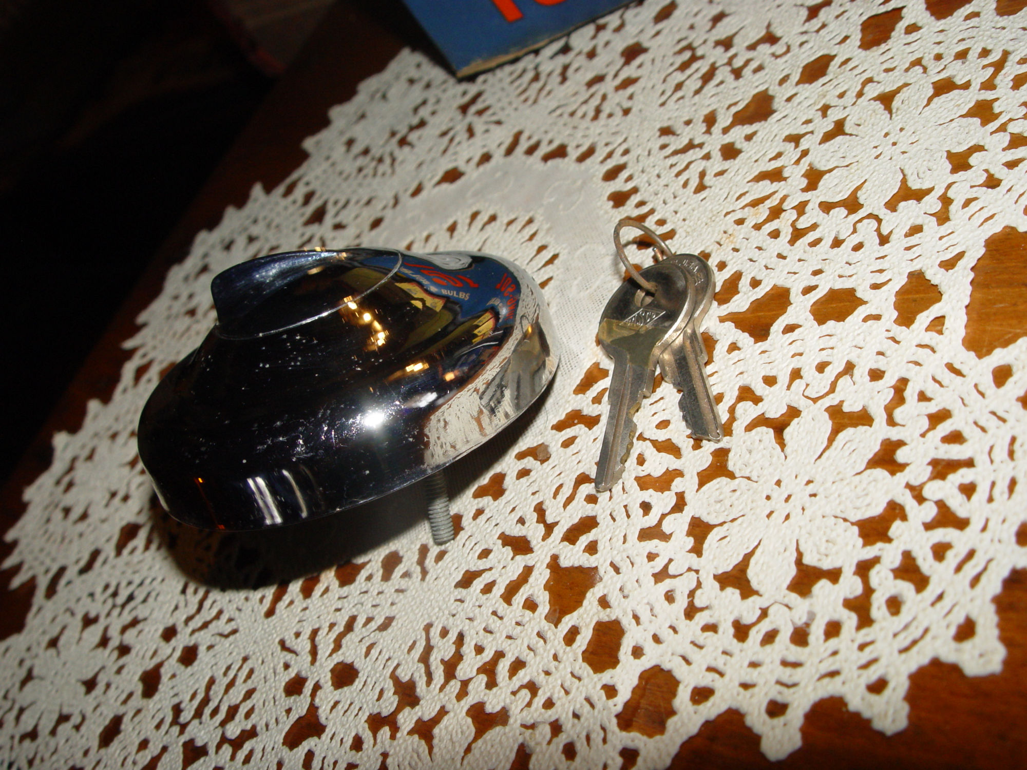 If you are doing a restoration on a 1940's or 50's Auto, if so, this would be a good option to consider. A new old stock vintage locking chrome gas gap with the original keys. Found in old warehouse. I have not cleaned buffed or done anything to this.