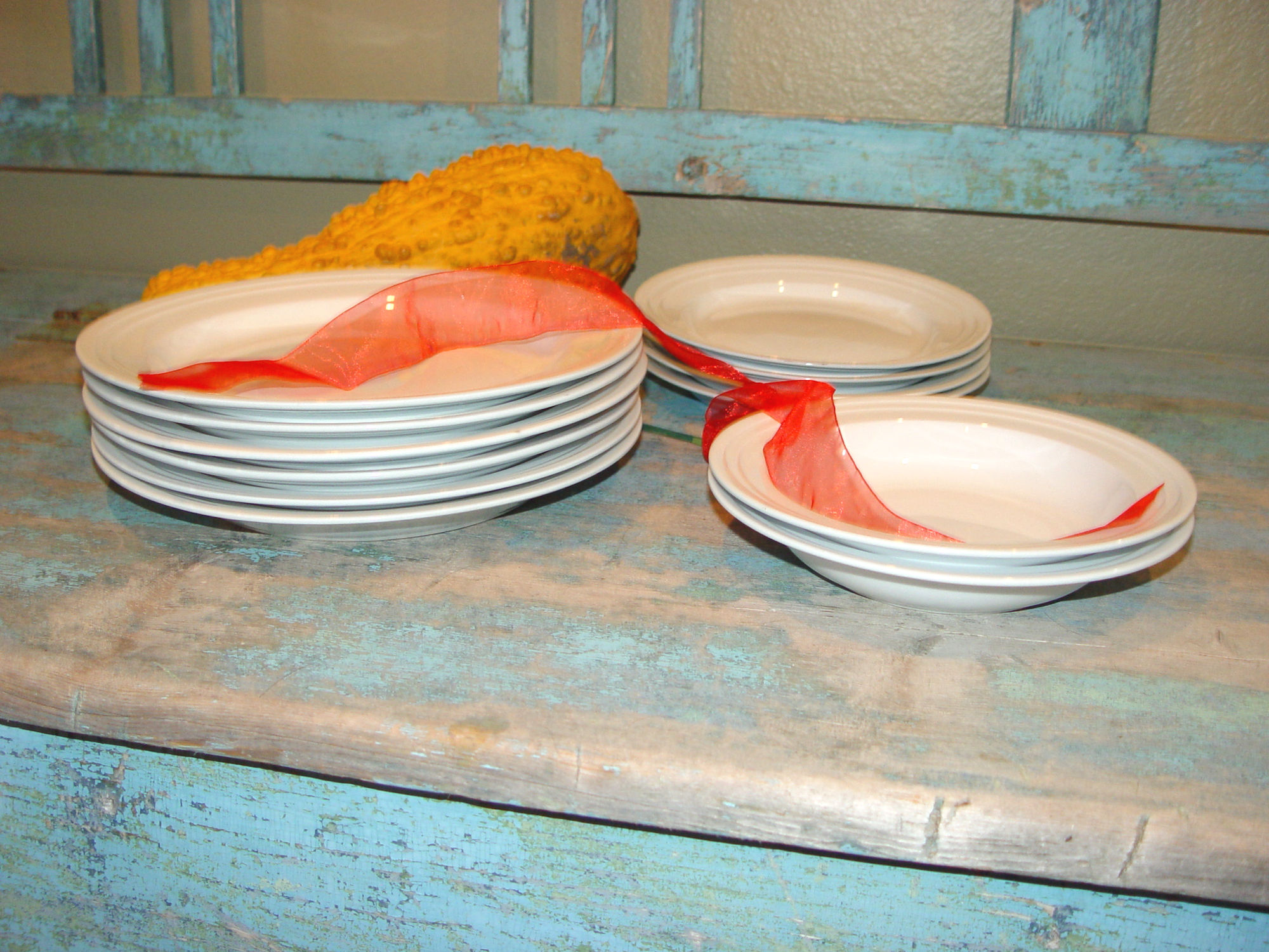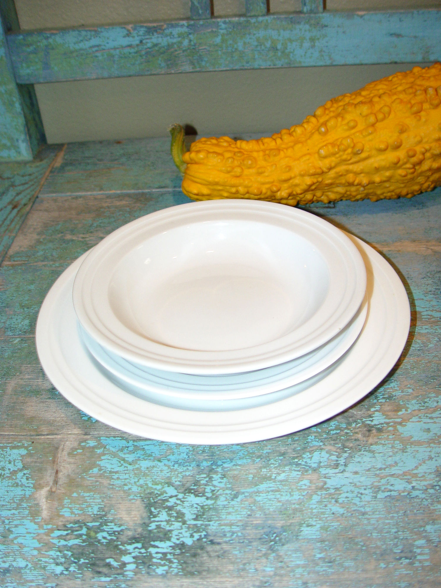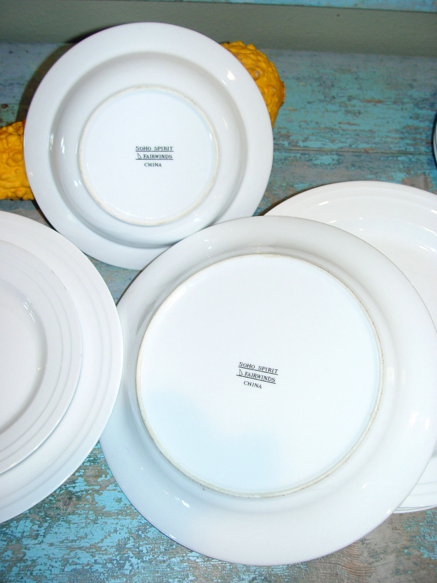 white with rings on rim. Made in China. Discontinued and