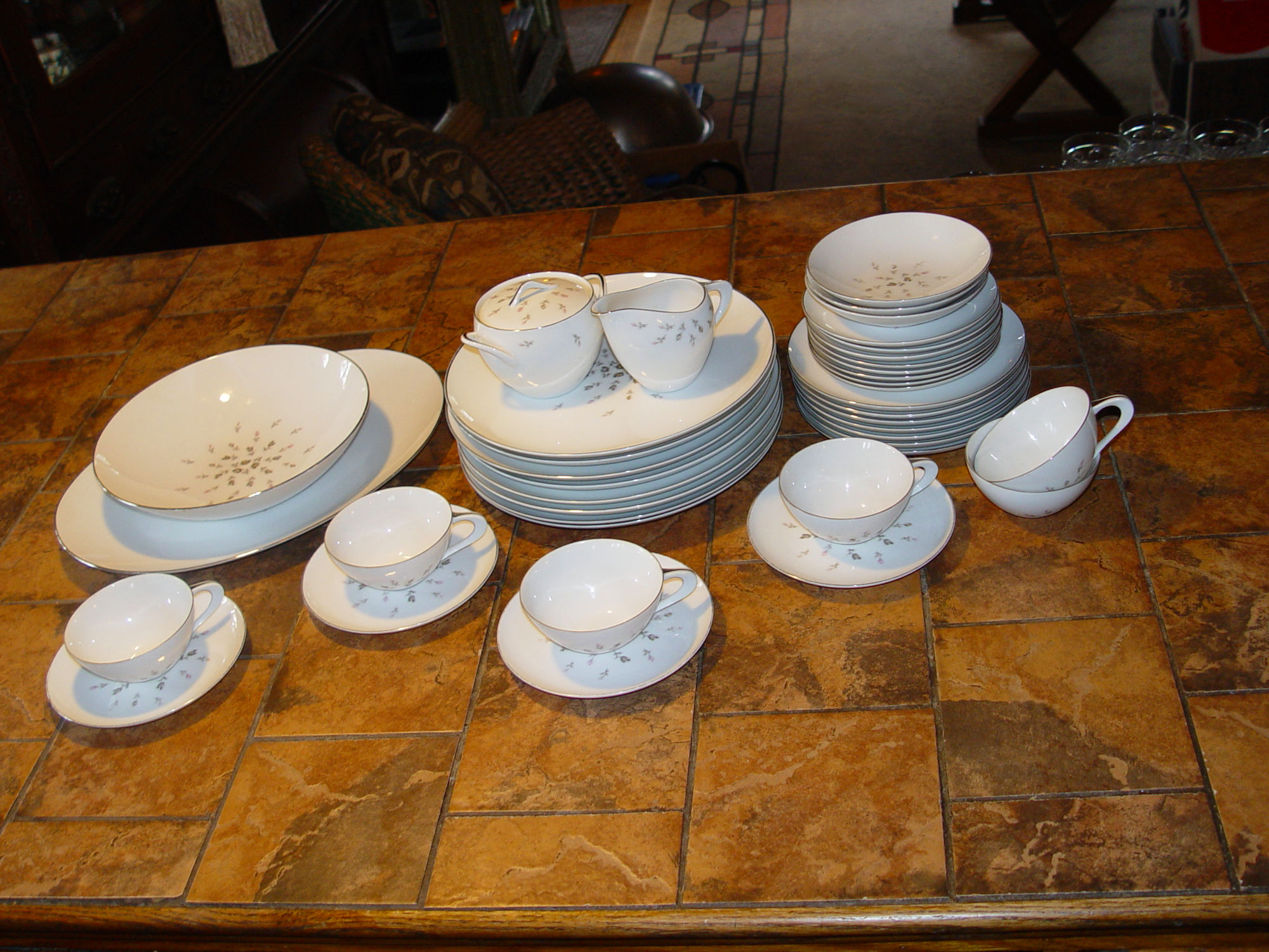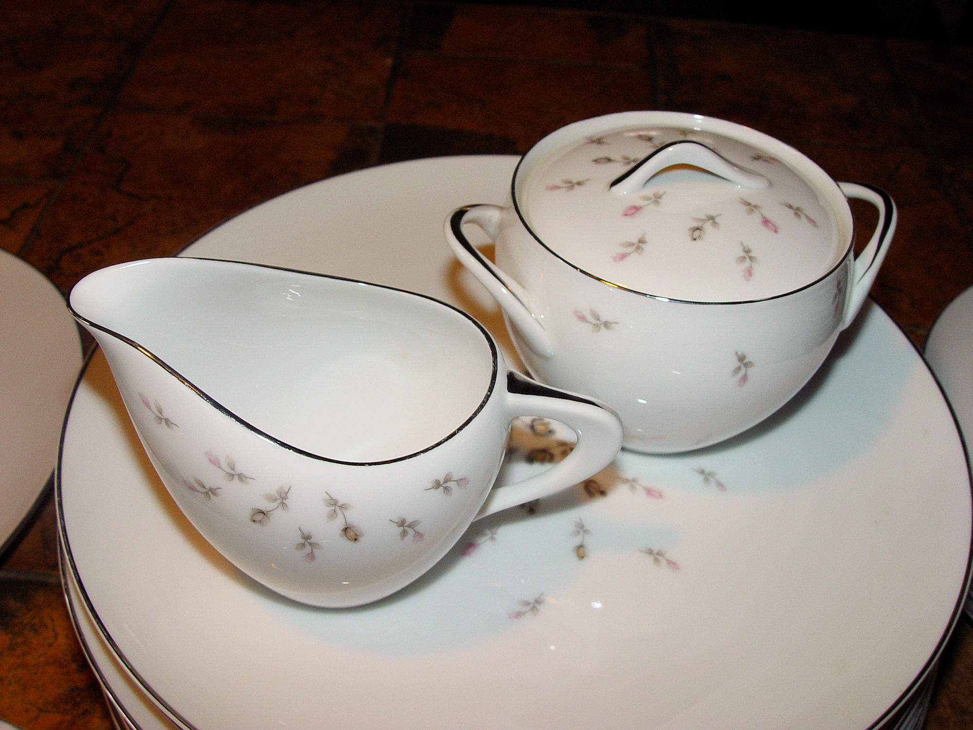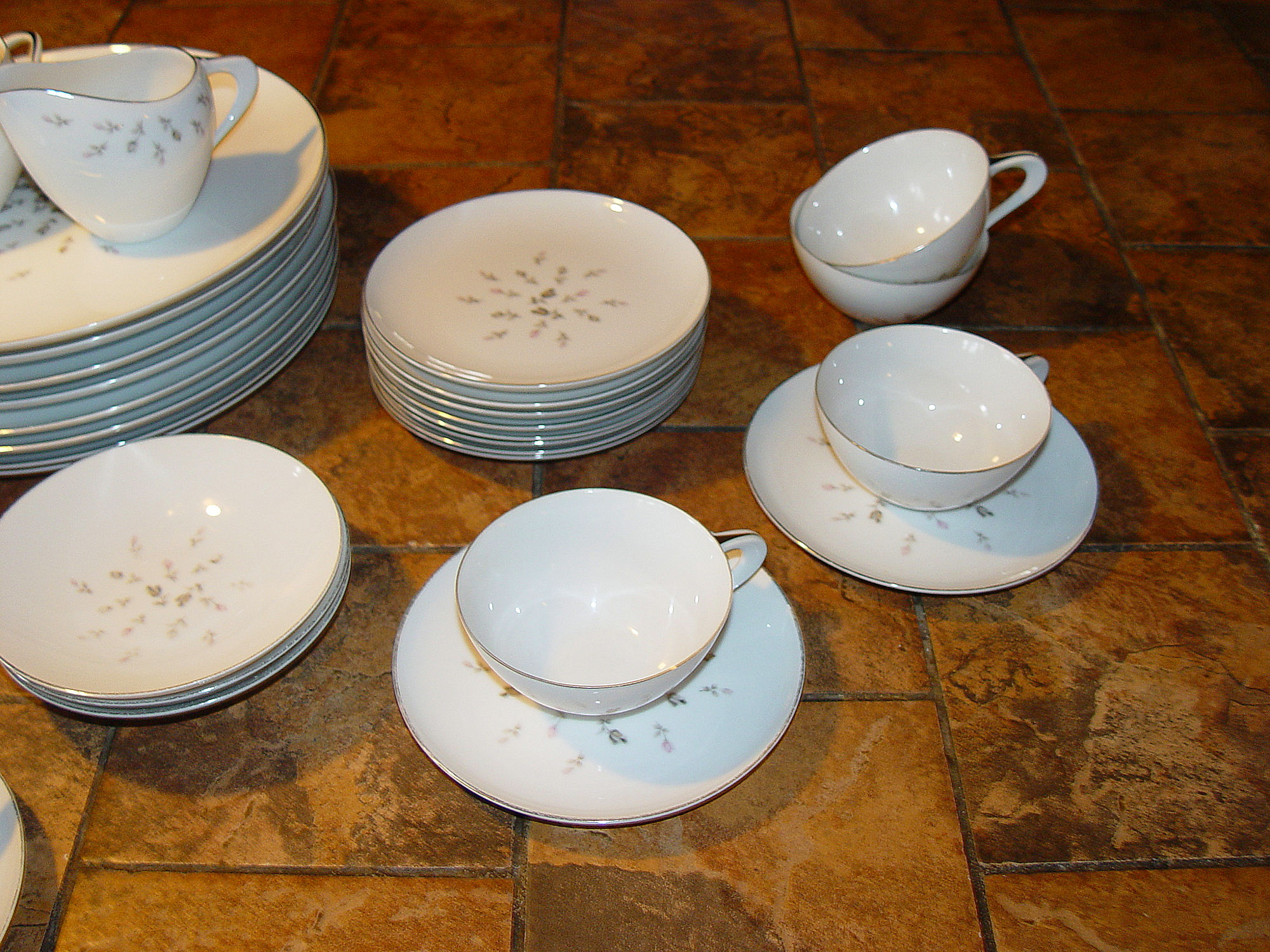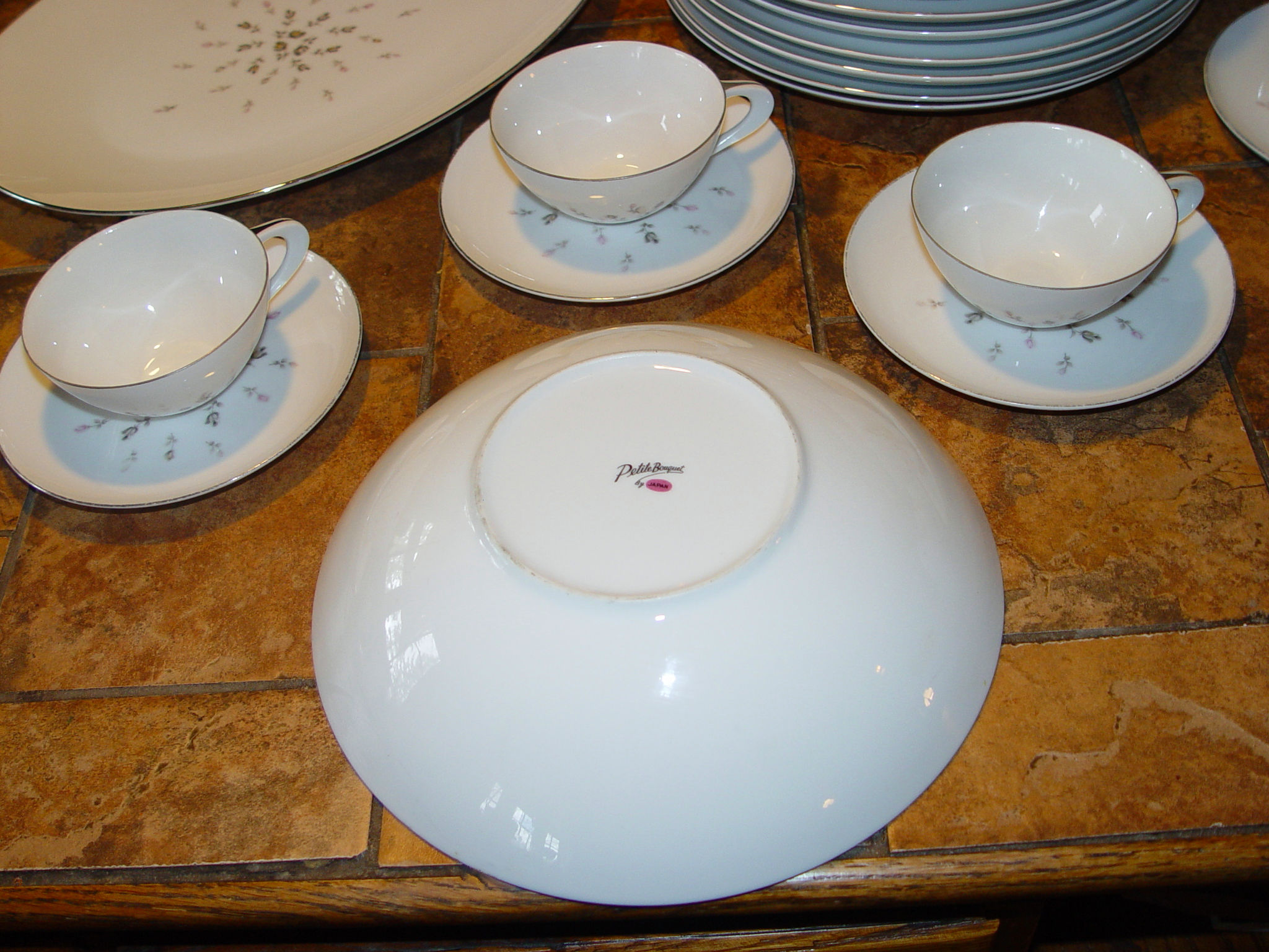 This china set is a vintage (circa 1959). Truly Lovely, “Petite Bouquet/ Sango Boutonniere (Japan). These dishes are known by the 2 names...Petite Bouquet is printed on the back, but they are more commonly known as Sango Boutonniere.