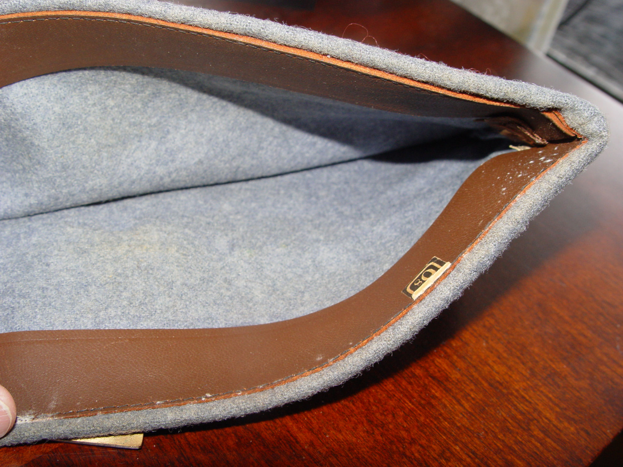 Size shows 6 7/8 - light blue or grey ribbon shows very minor soiling and the enamel is very nice. The piece in the middle shows the word 'Cheminot'