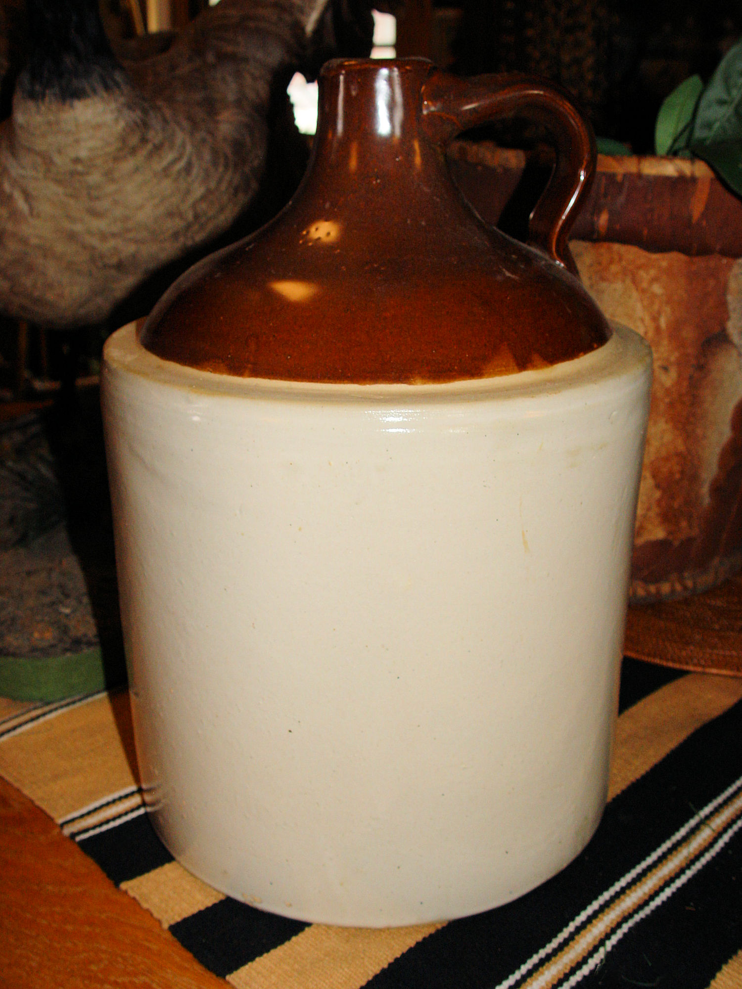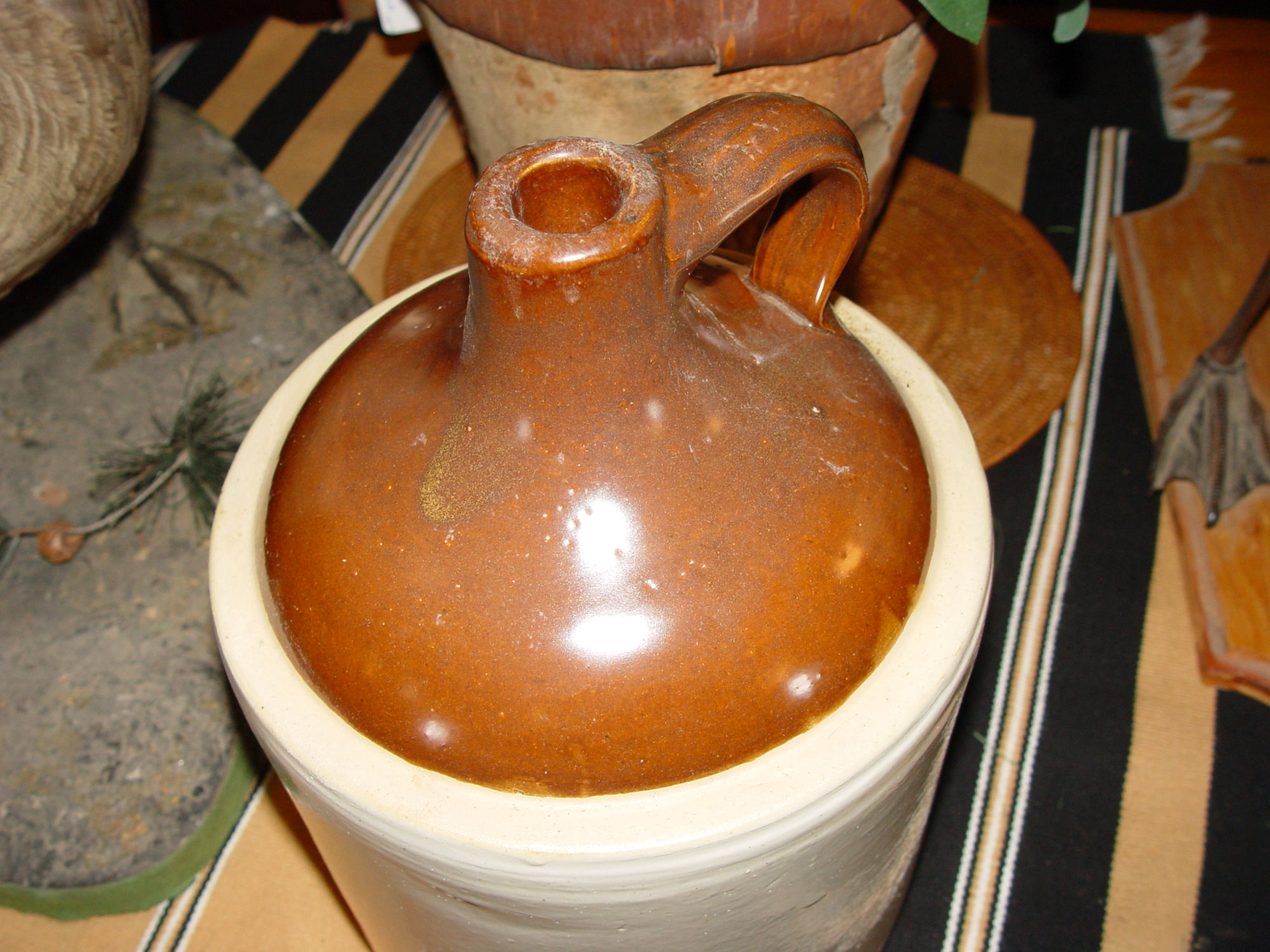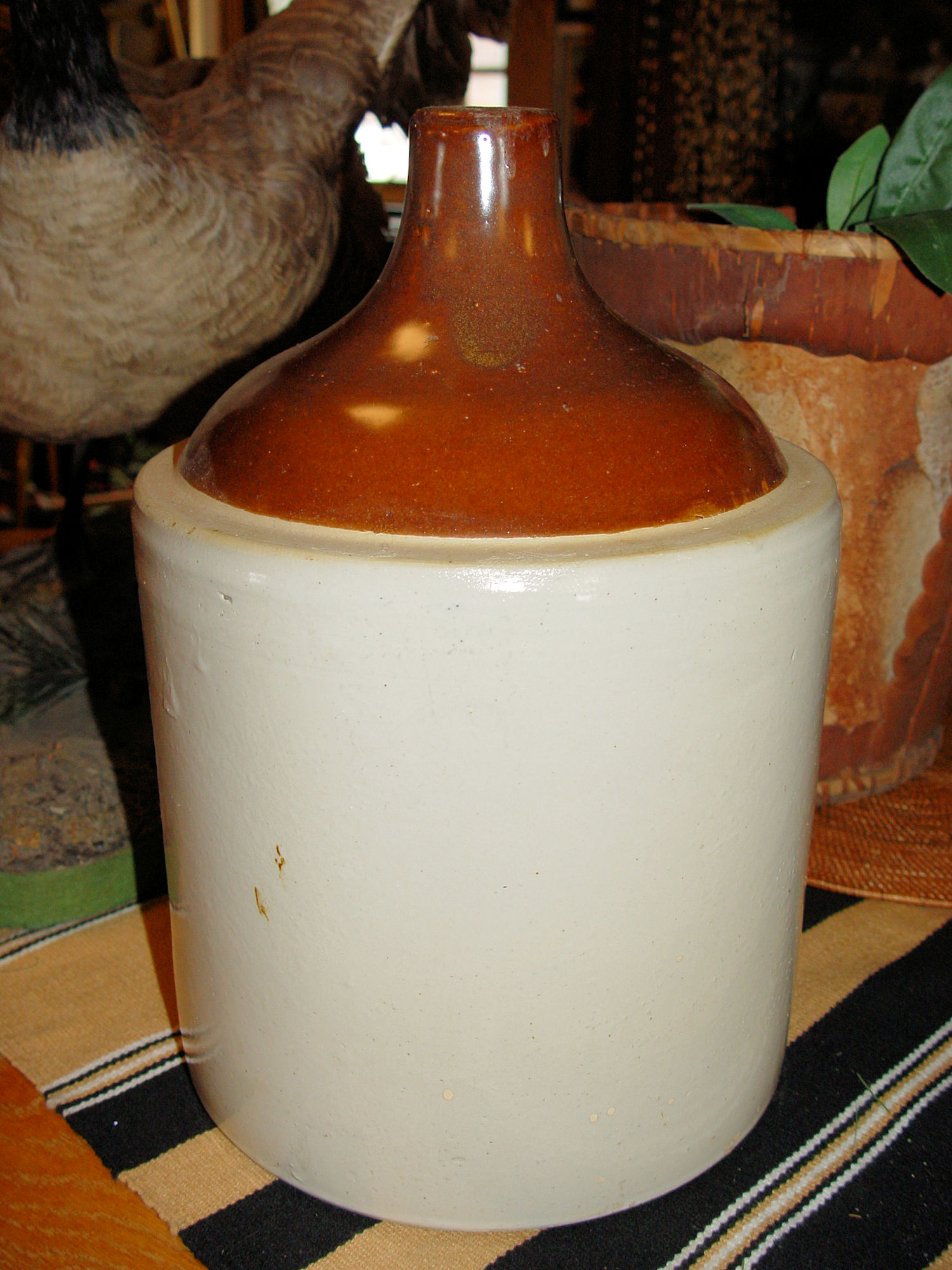 Antique whiskey jug zinc brown topped stoneware crock that we