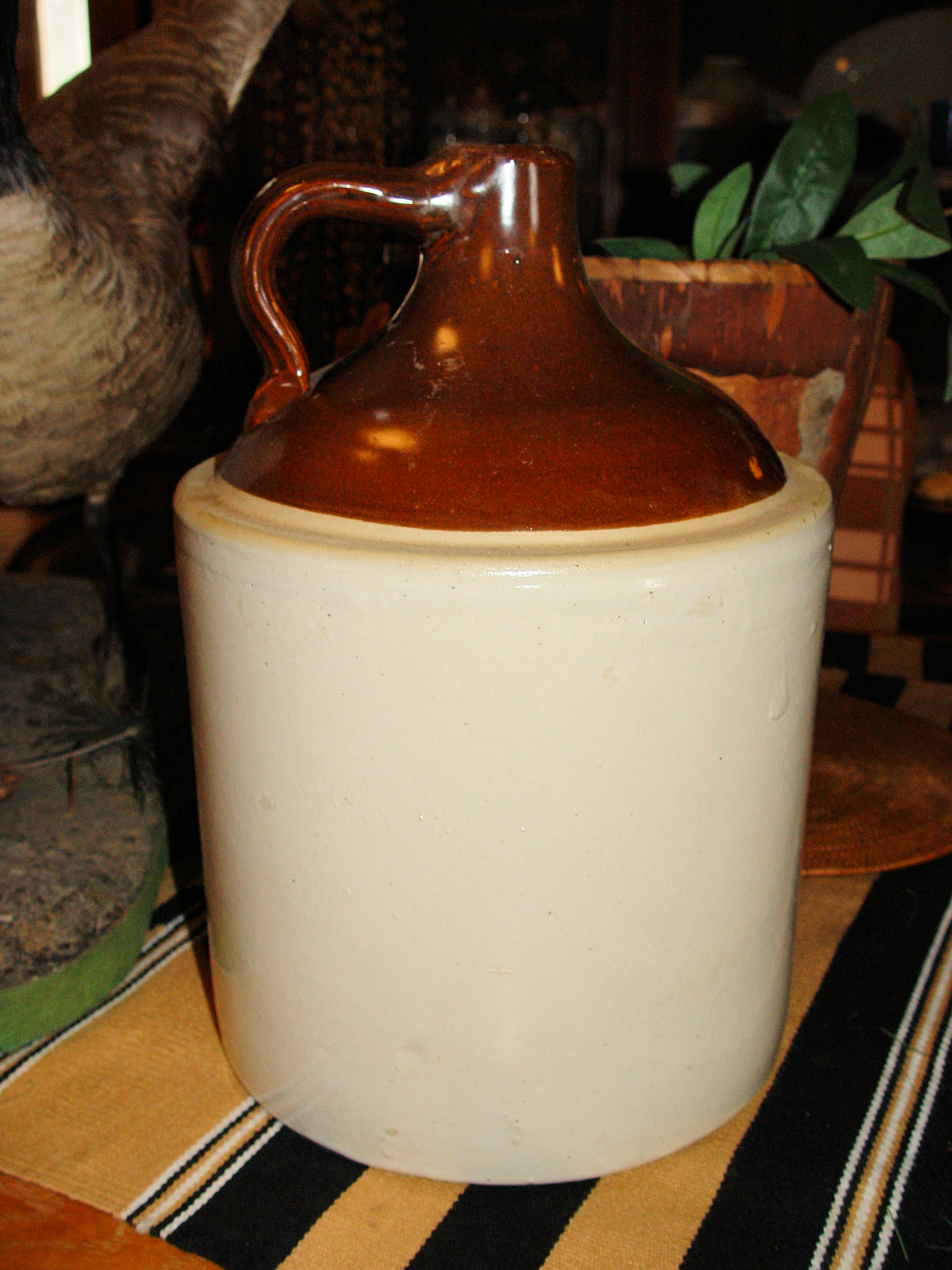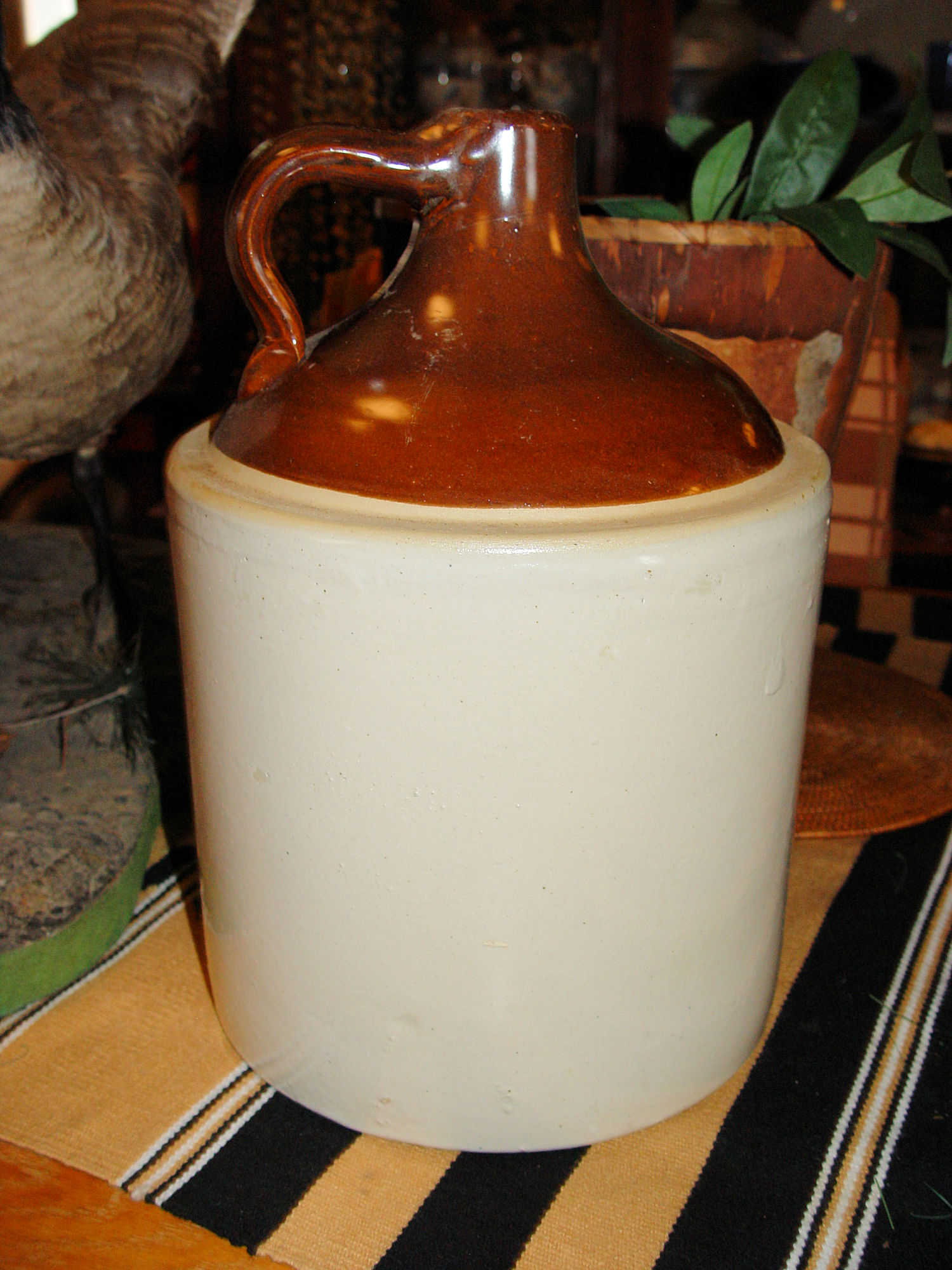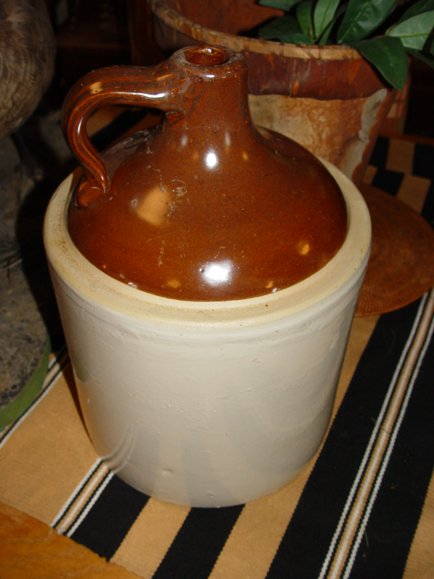 Antique whiskey jug zinc brown topped stoneware crock that we