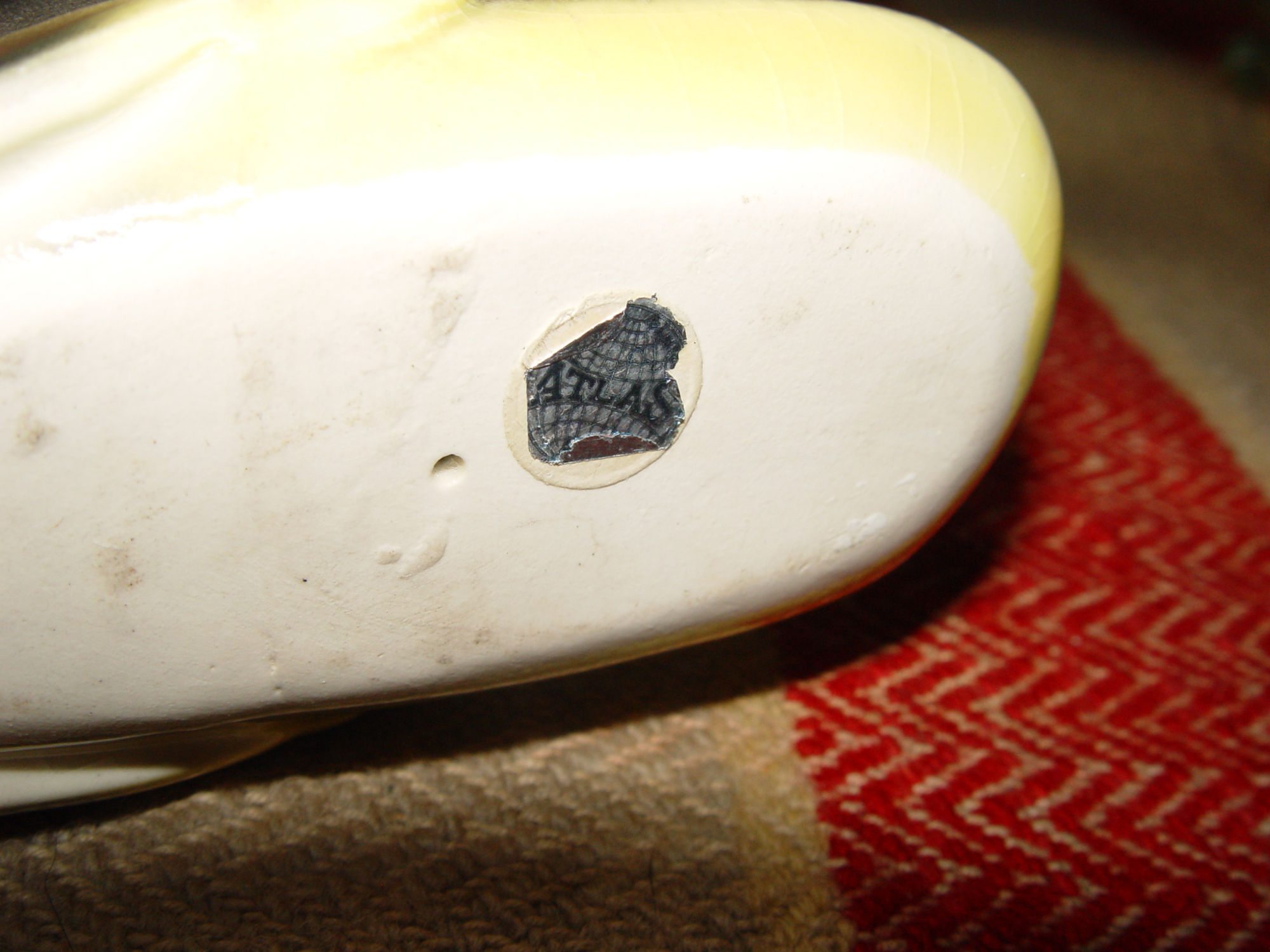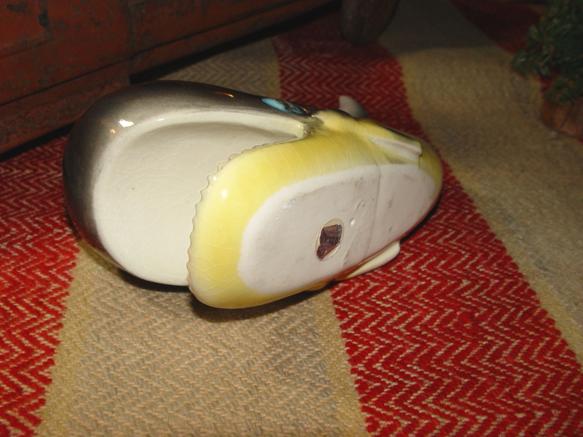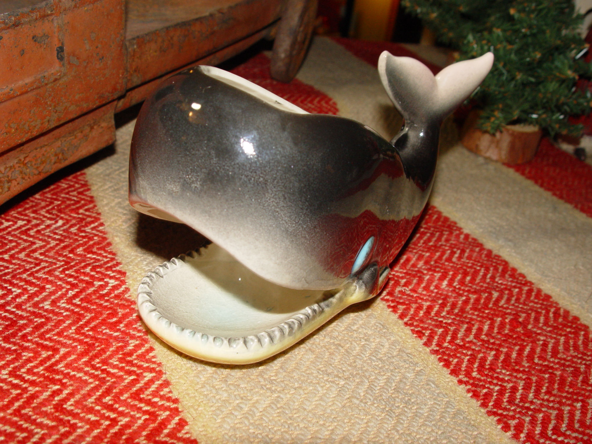 Atlas collectible Whale planter - 1950s hand painted planter with bright blue eyes and a large smile. The manufacturer's label reads Atlas. Made in Japan. Fun pottery piece that is in very good condition. Great for the bath, bedroom or beach house. Estate find.
