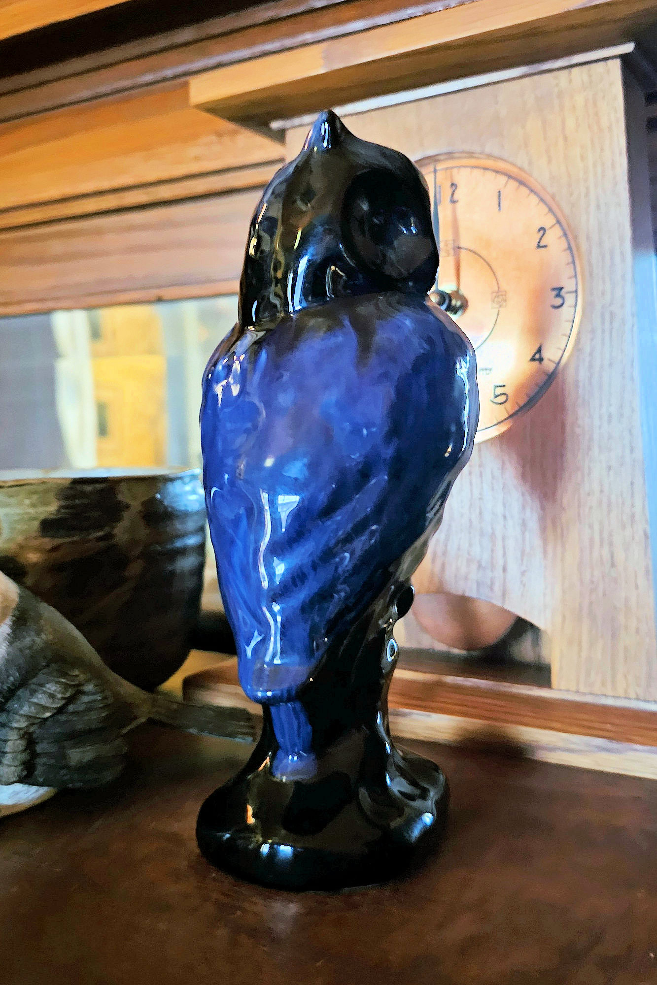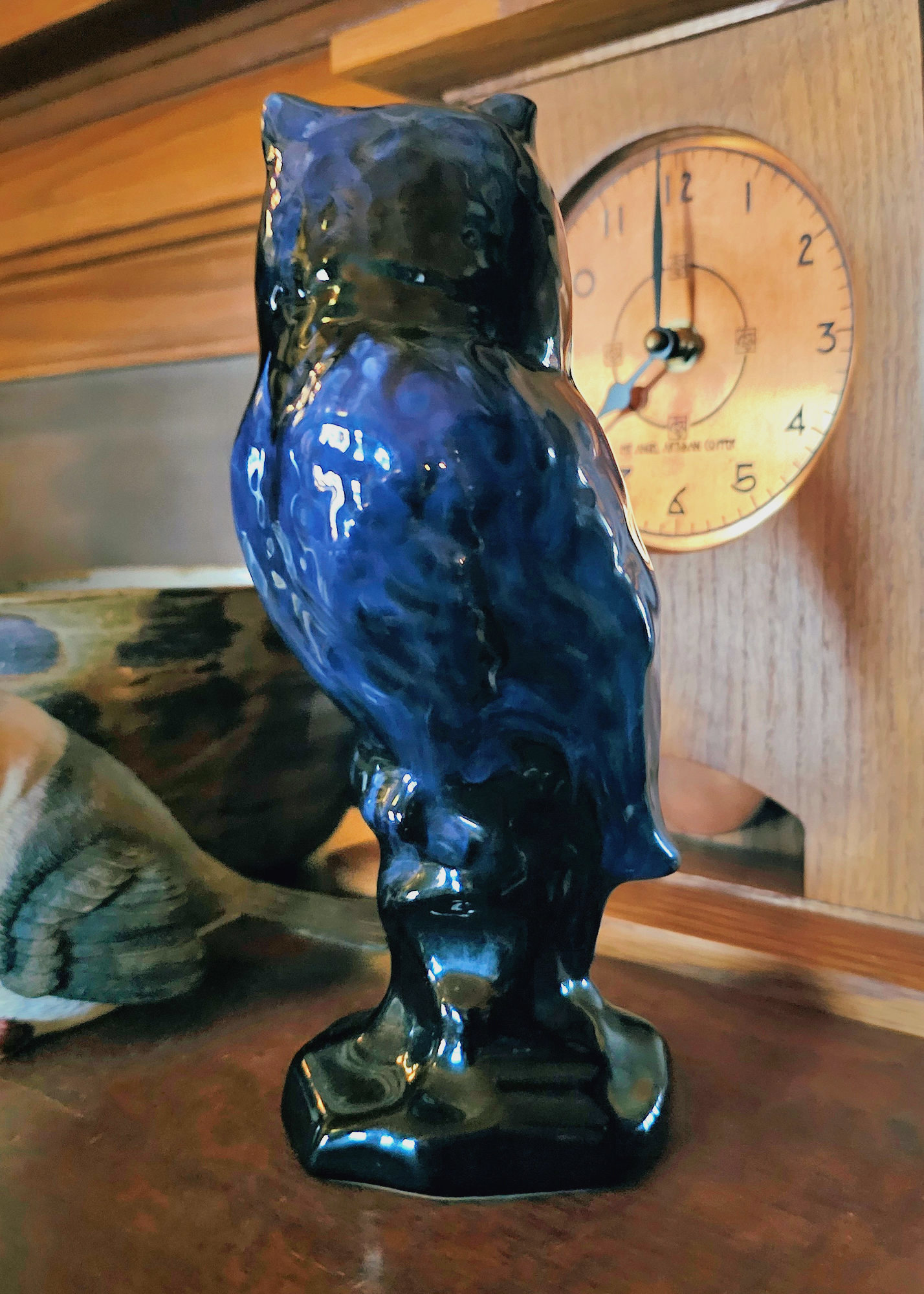 Blue Mountain Pottery or vintage Canuck (Canadian) pottery? I'm not sure, but believed same era. Beautiful dark blue on black drip glaze Owl. Beautiful collectible example of Canadian pottery. The owl has the prettiest profile will please anyone who receives as a gift or for your own pottery collection.