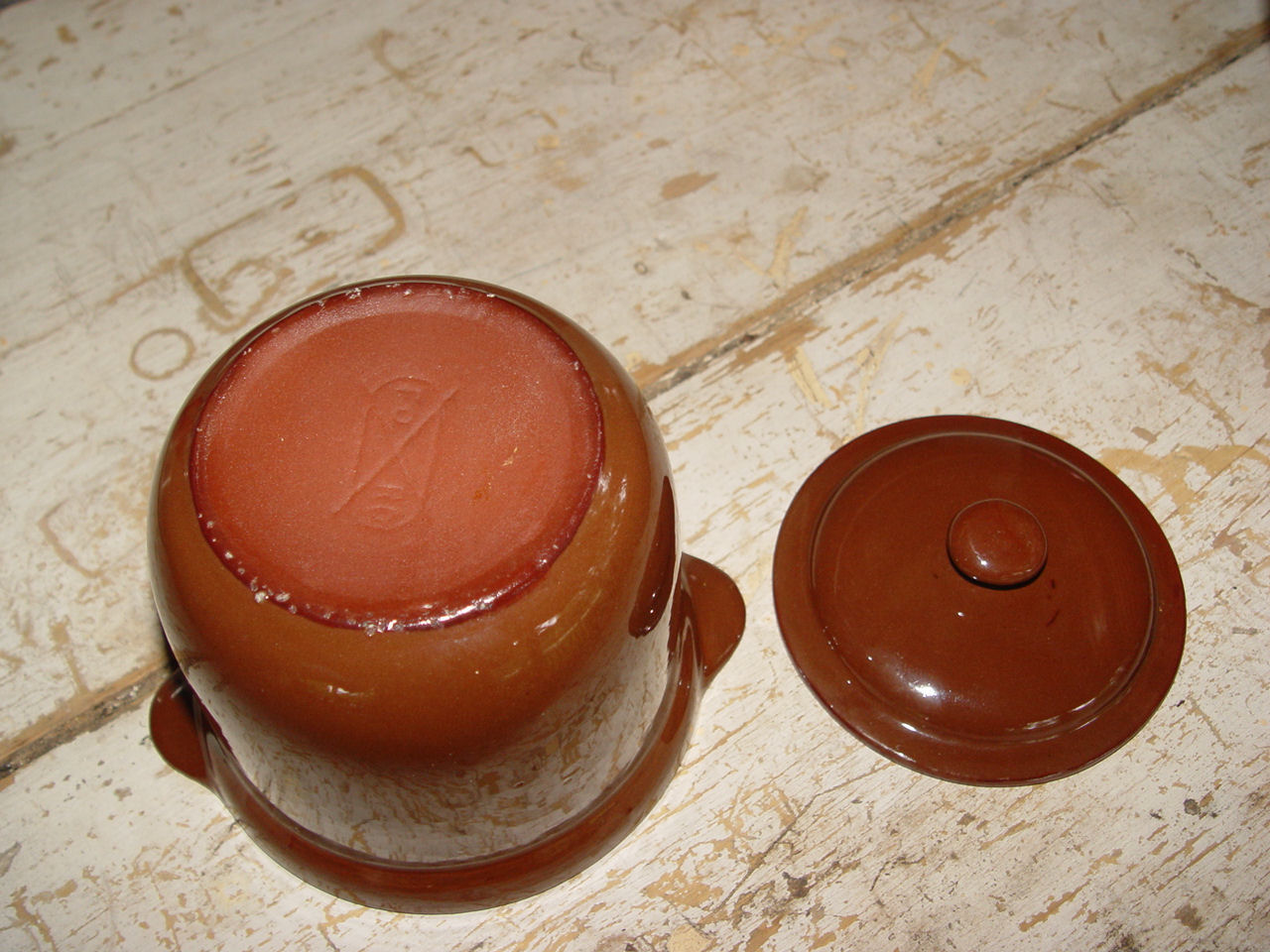 Looks like it was never used. Bright glaze and some normal factory ware on bottom...see photos. Marking on bottom indicates Oxford very early 20th century.