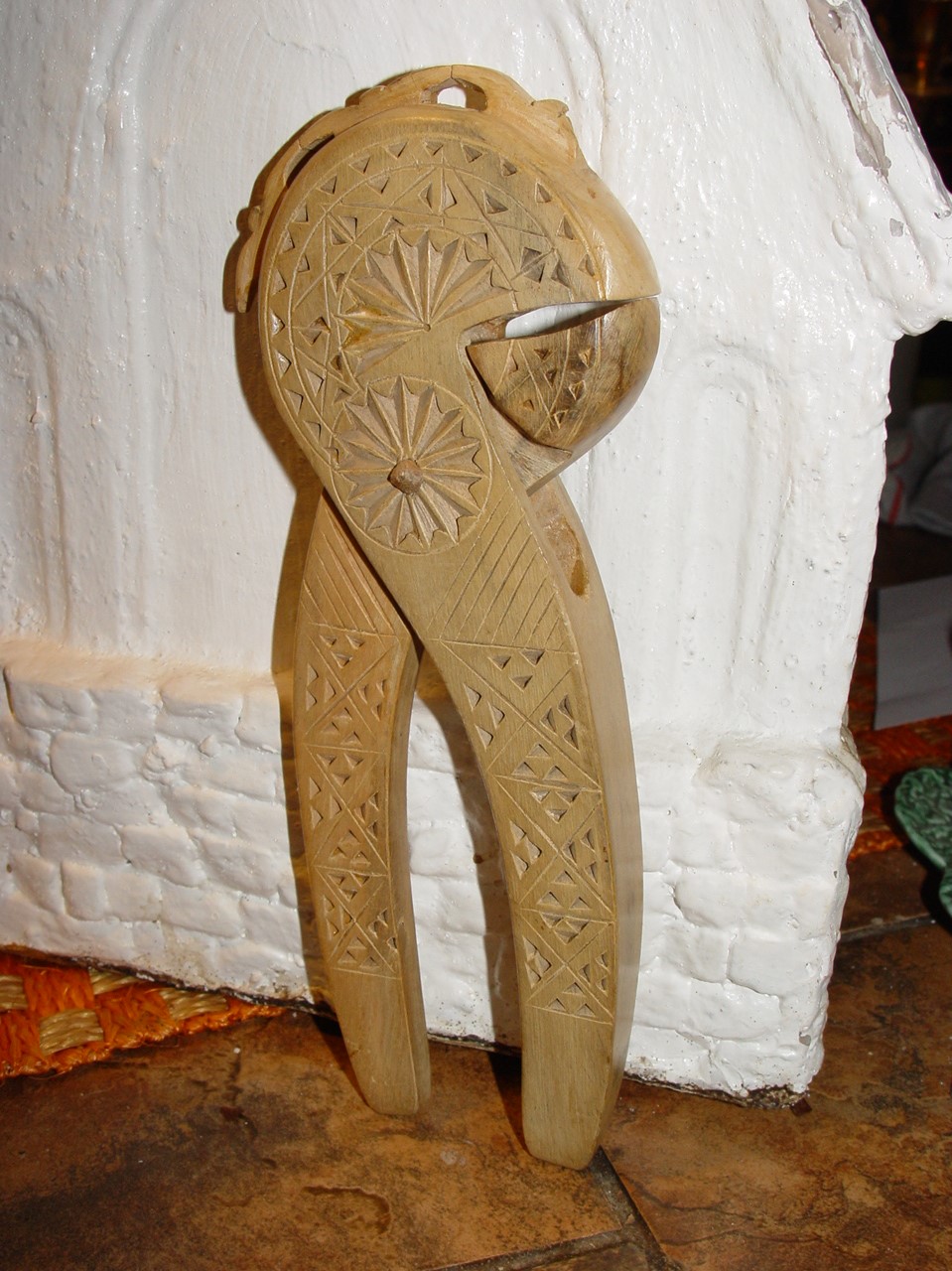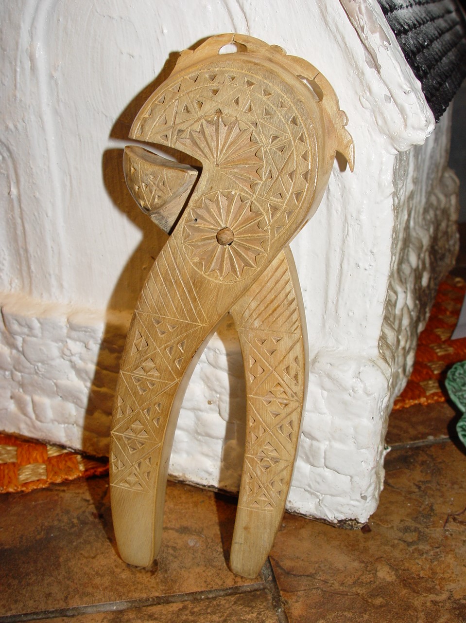 Vintage (circa 1960s) carved wooden nutcracker. Wonderful piece that would make a neat display or gift idea. Kuksa style design and shape, typical of nice early folk art pieces from the Netherlands and Scandinavian countries. Believed to be dating to around the late 1940's to 60's.