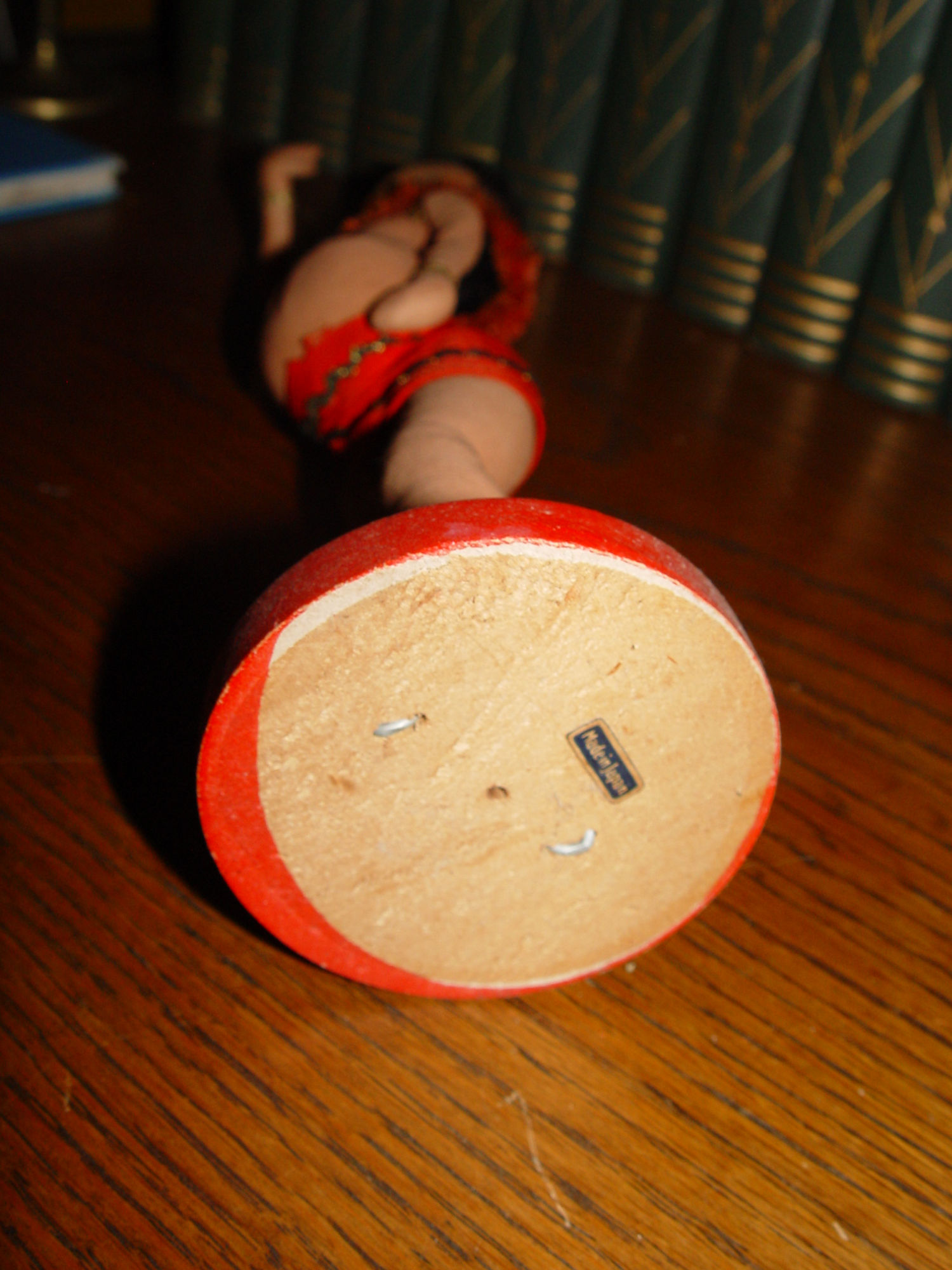 This shows a Made in Japan sticker on the base. The doll measures