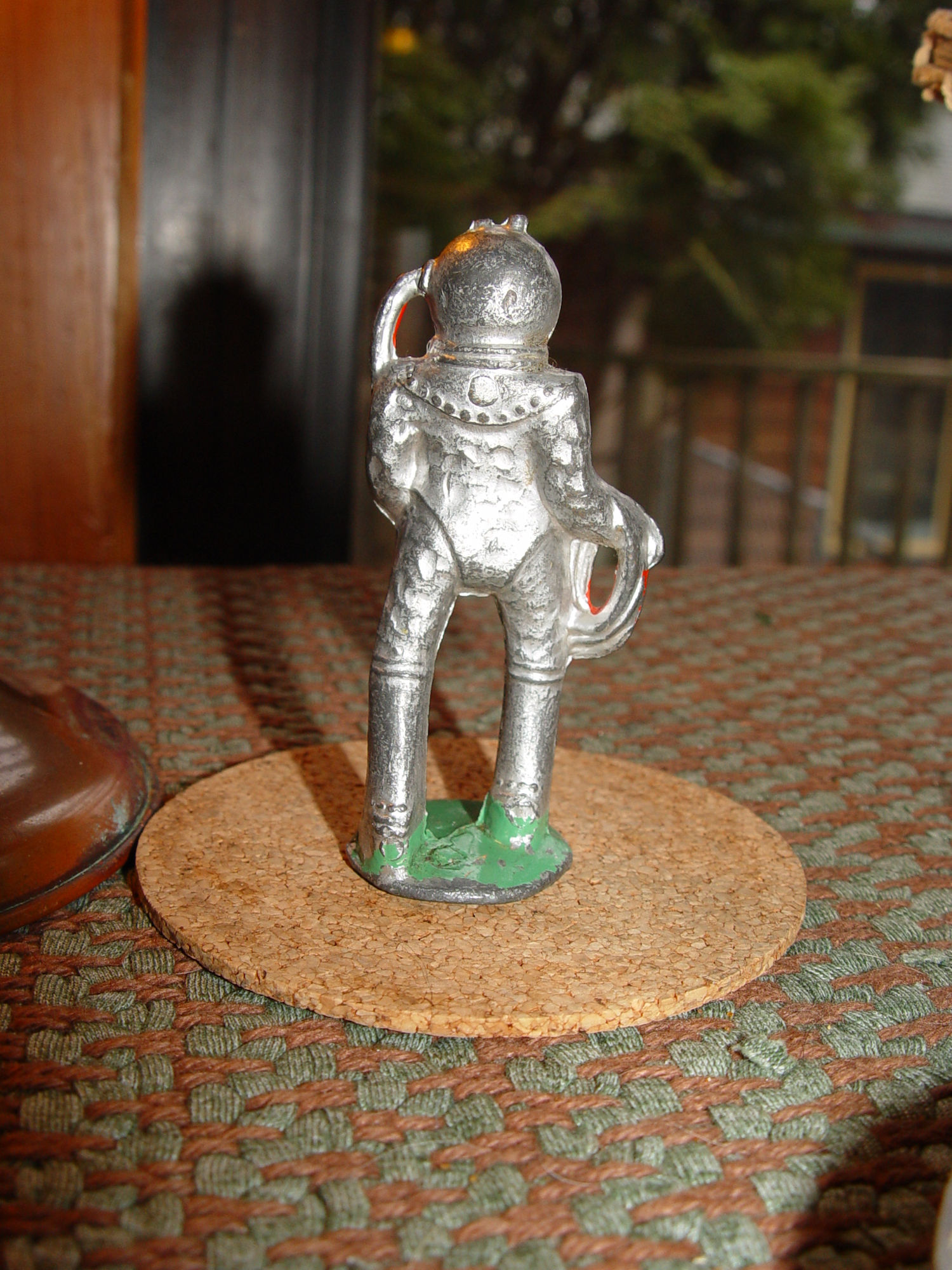 Neat 1960s Manoil Barclay deep sea diver. Made of lead, this guy is collectible and hard to find, specially in this condition. Great paint still remains on him and he is not beat up as so many were. Believed to be hollow, this figure is on a green painted small circular platform. Measuring approx. 3.25" tall by 1.5" wide. On bottom you can make out the word Manoil.