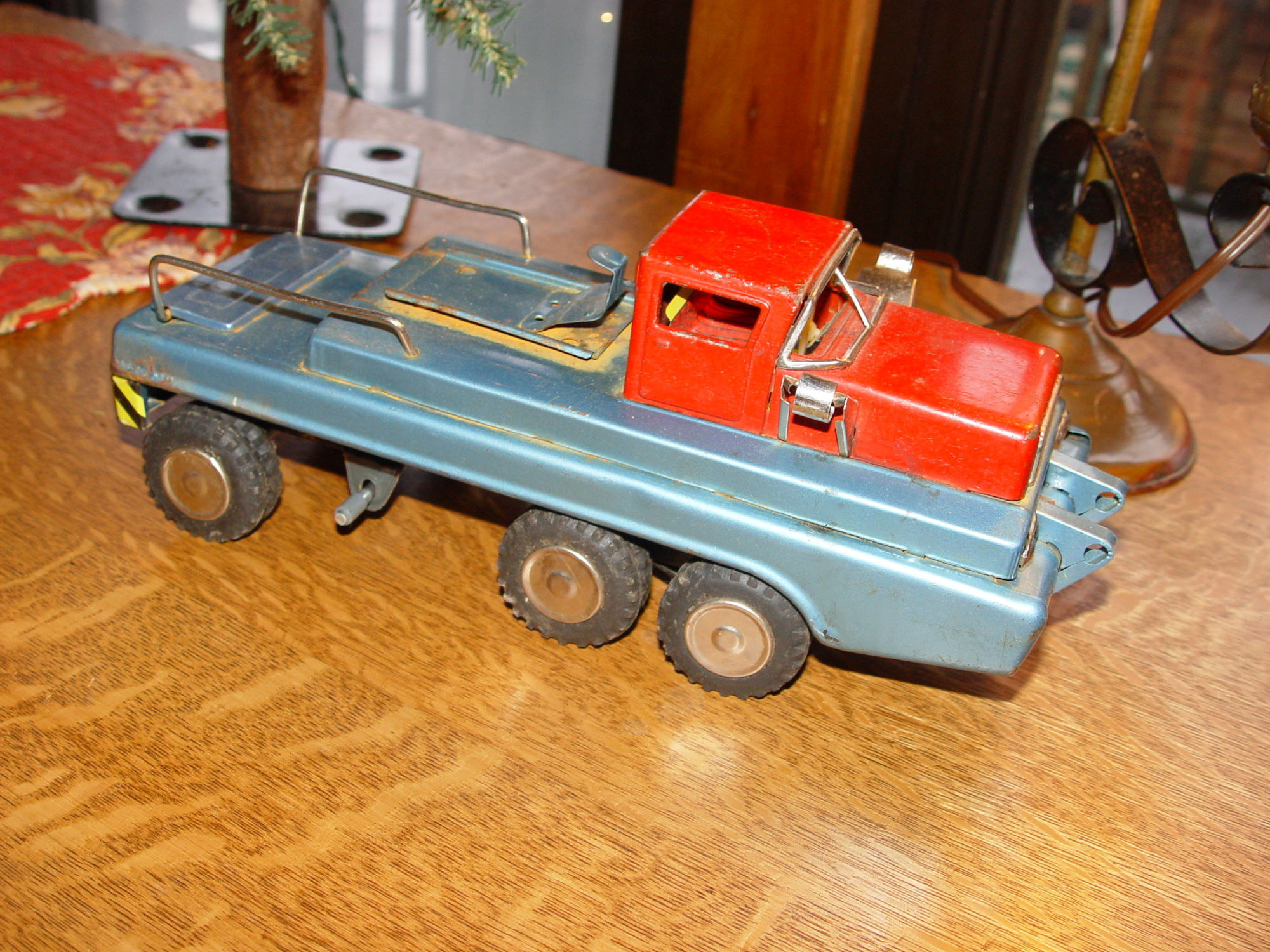 Really cool looking SSS International truck wrecker that was recently found in an estate full of vintage toys. There is expected wear from use, age and play but the only real issue is it's missing 2 wheels and the wrecker arm. I may still find these and if so, will mail free of charge to buyer. This is as found and needs a light cleaning. Again, great look and neat color combination.