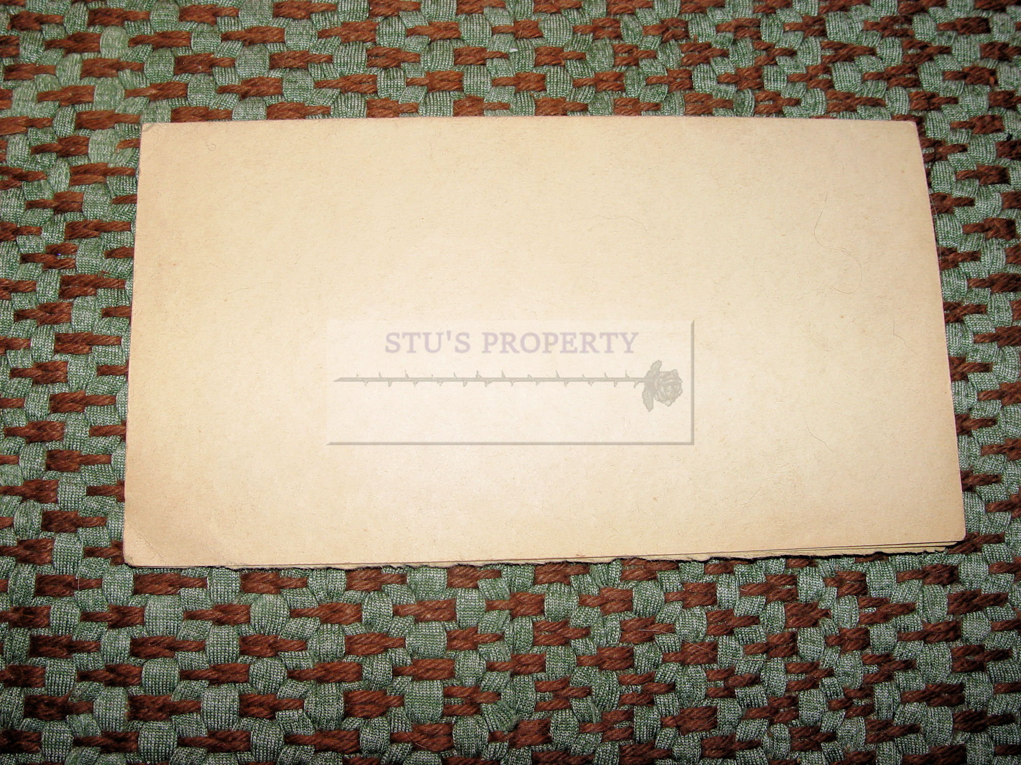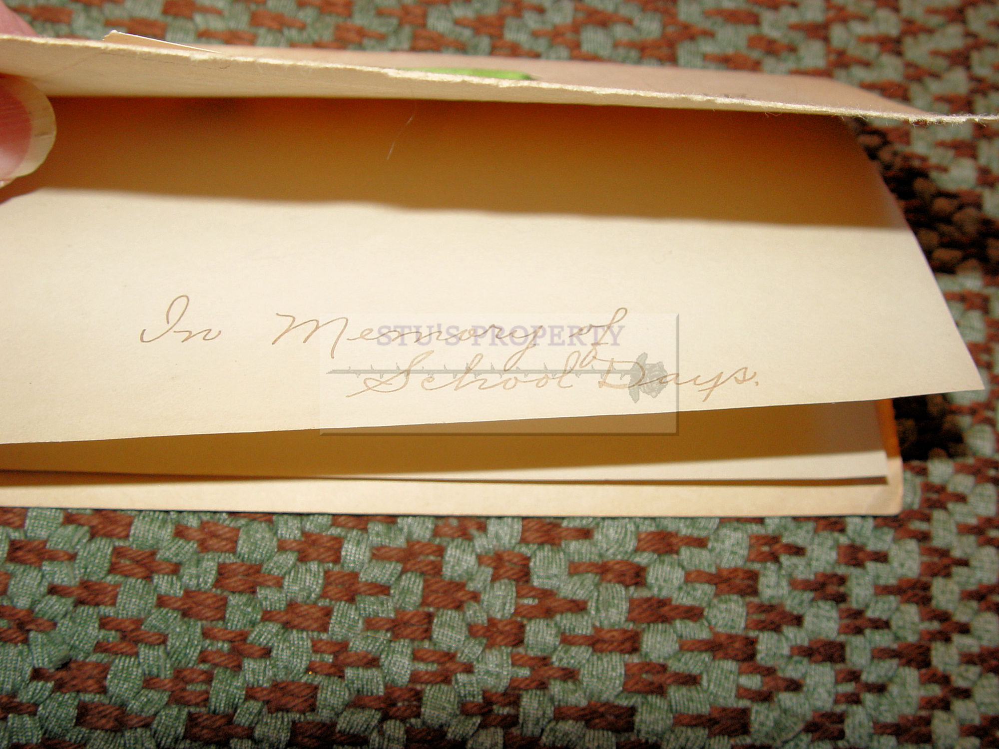 Gold gilt decorated and green ribbon tie. Actual photograph pasted